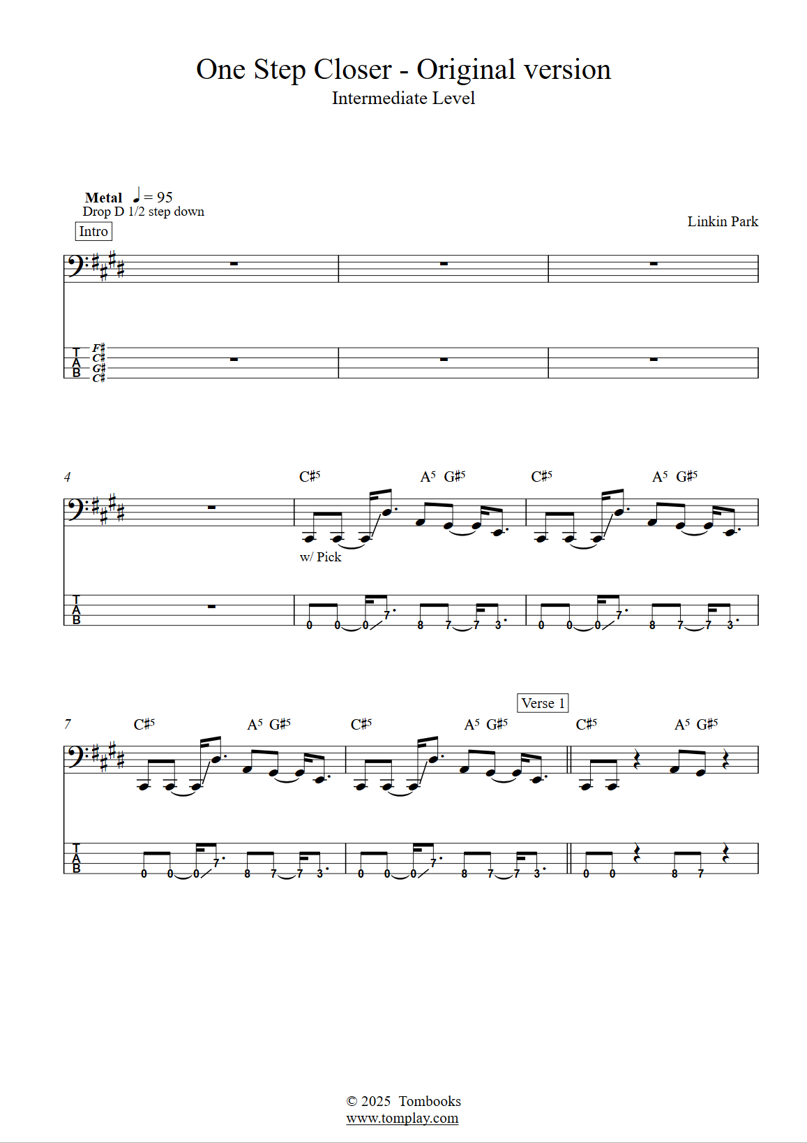 Téléchargez la tablature et la partition Basse One Step Closer - Version originale (niveau…