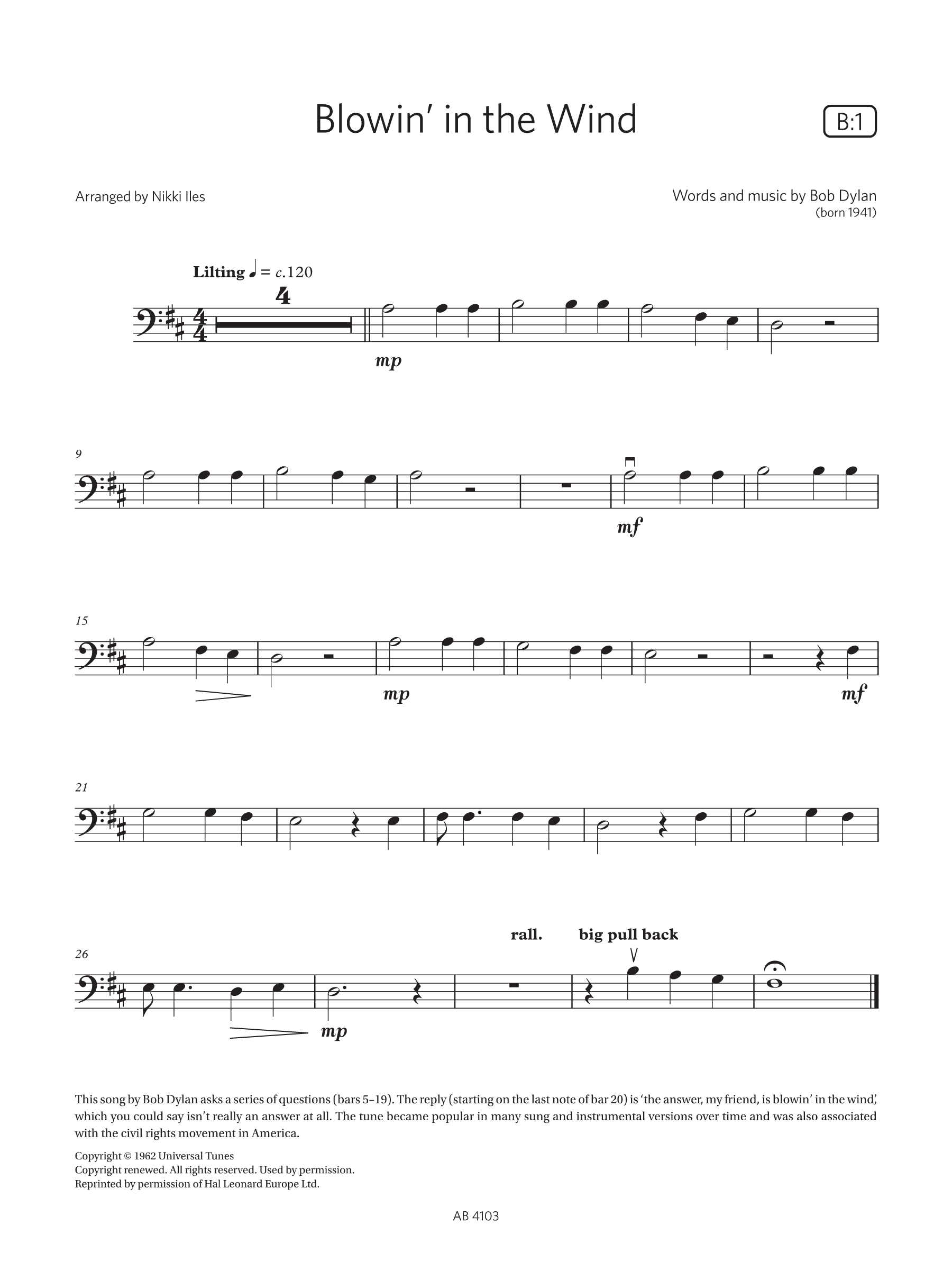 arr. Nikki Iles,Bob Dylan : Blowin' in the Wind (ABRSM Cello Exams from 2024, Initial Grade, B:1)