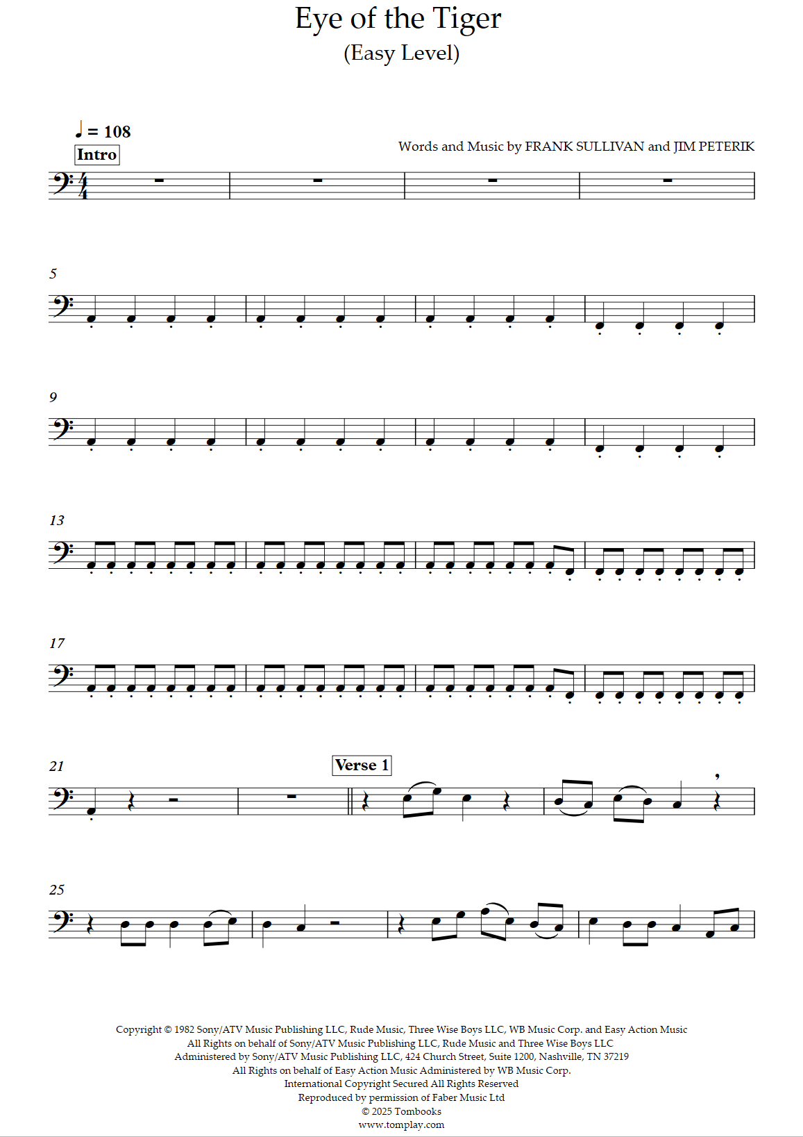 Téléchargez la partition Violoncelle Rocky 3 - Eye of the Tiger (niveau facile) de Survivo…
