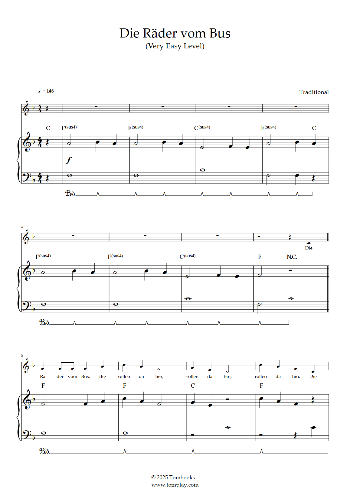 Téléchargez la partition Piano Die Räder vom Bus (niveau très facile, avec orchestre) de T…