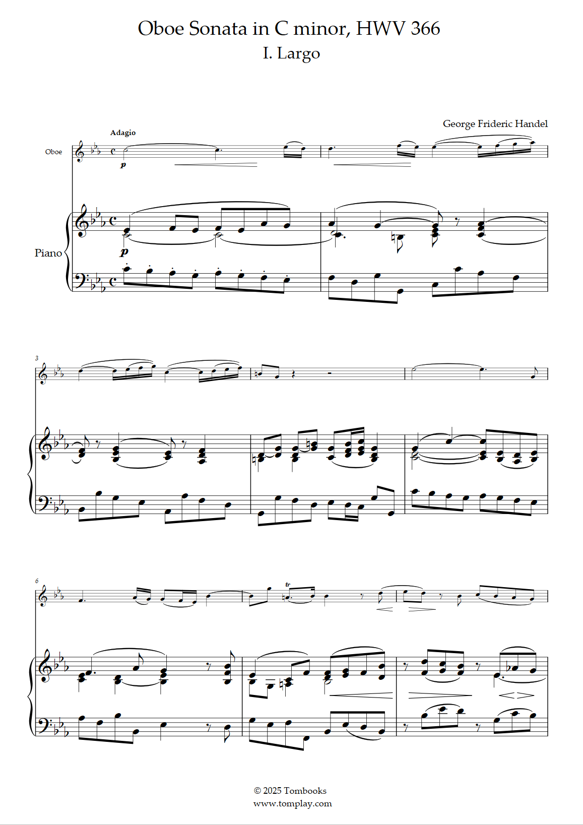 George Frideric Friedrich Handel Haendel : Sonate pour hautbois en do mineur, HWV 366 - I. Largo