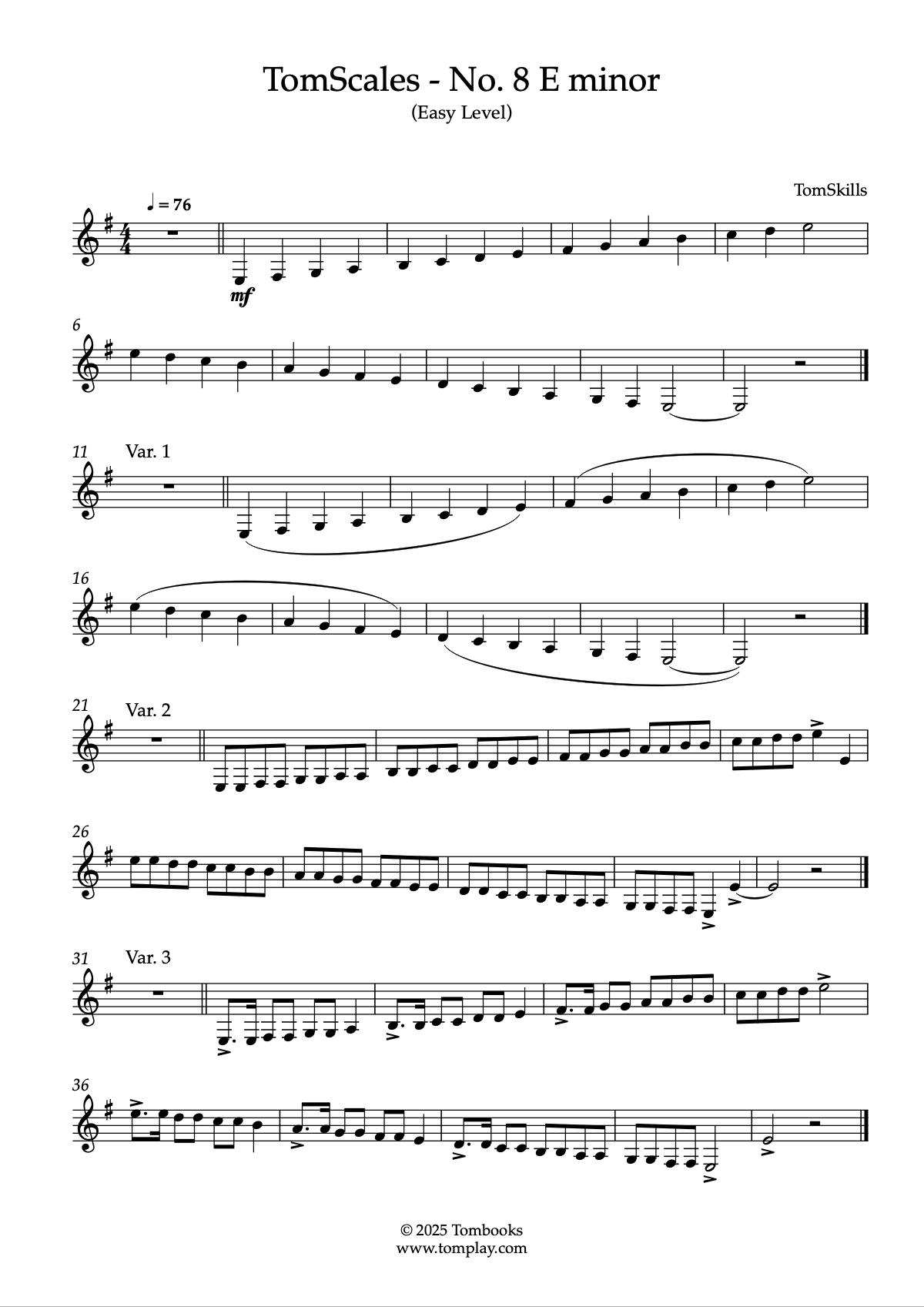 Téléchargez la partition Clarinette TomScales - N° 8 Mi mineur (niveau facile) de TomSkill…