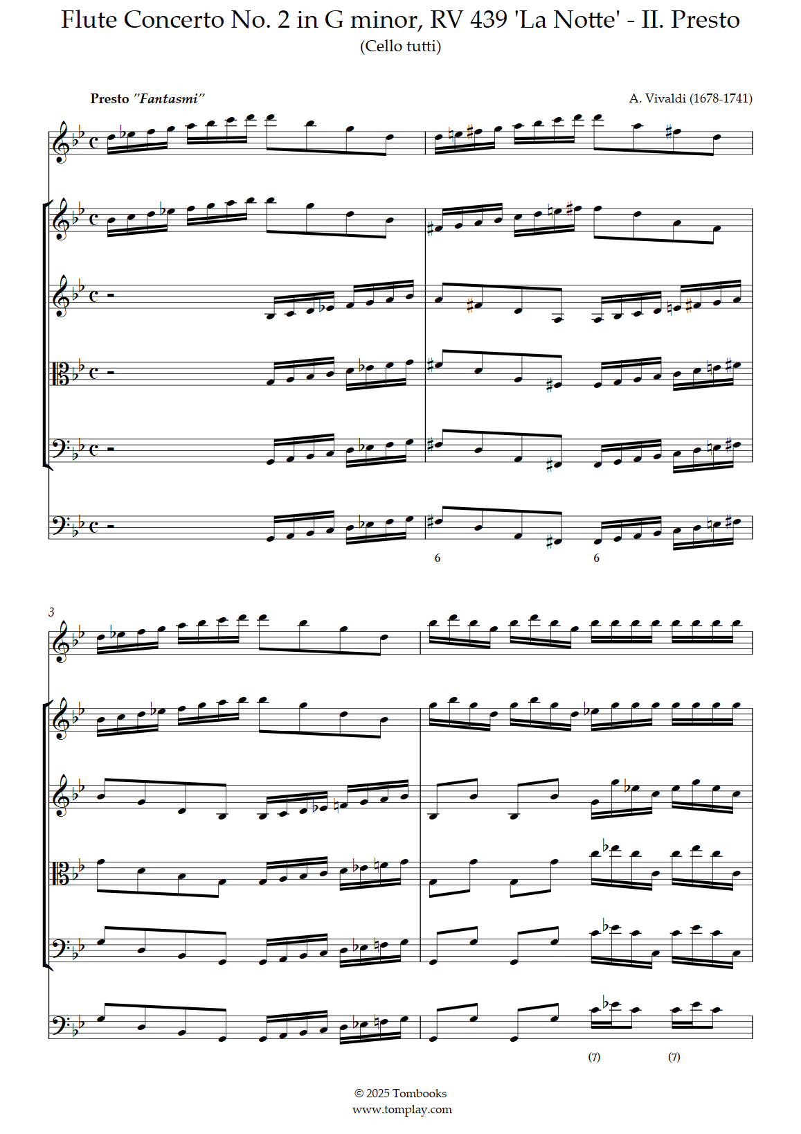 Vivaldi : Concerto pour flûte n° 2 en sol mineur, RV 439 'La Notte' – II. Presto (Violoncelle tutti)