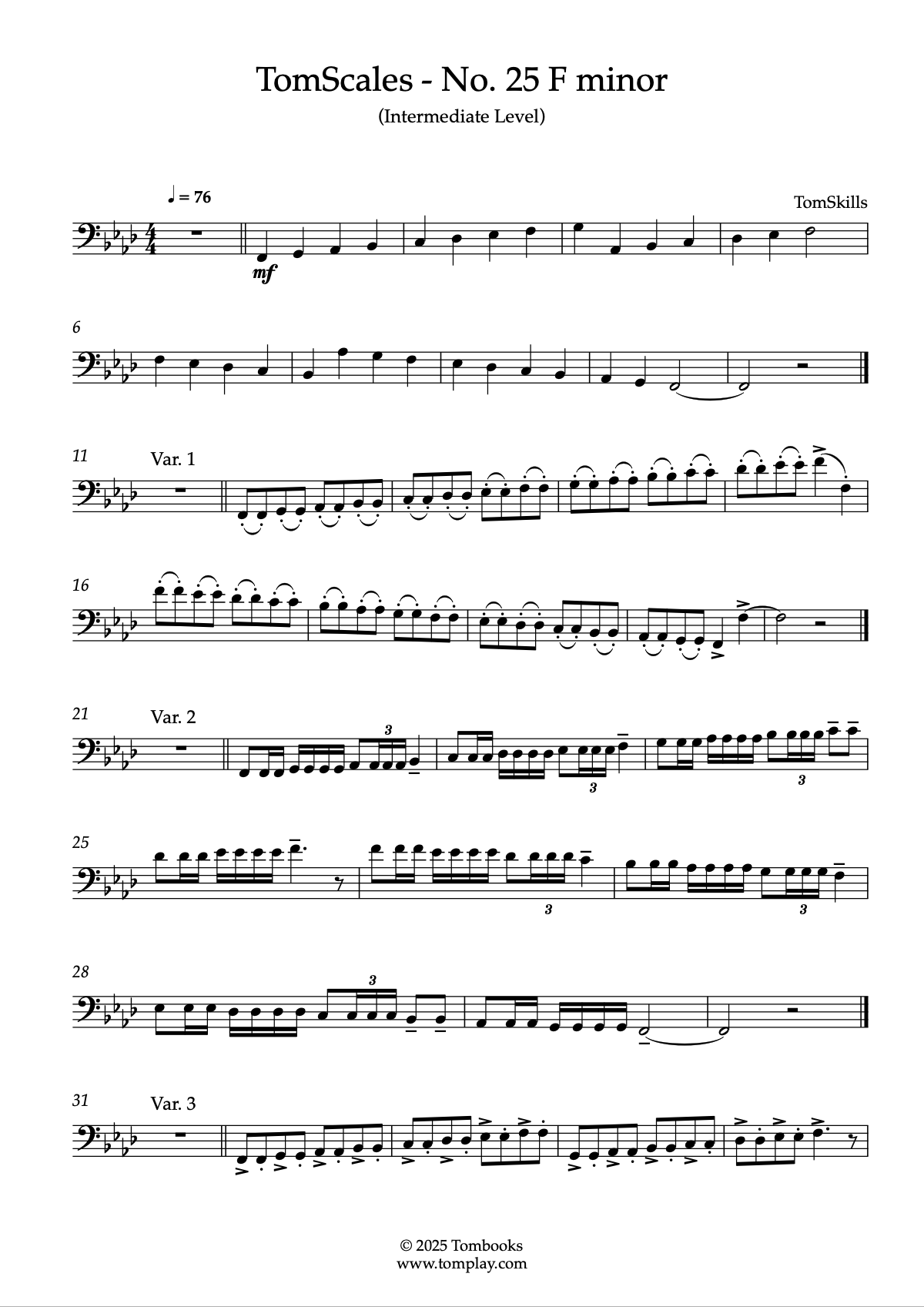 Téléchargez la partition Trombone TomScales - N° 25 Fa mineur (niveau intermédiaire) de To…