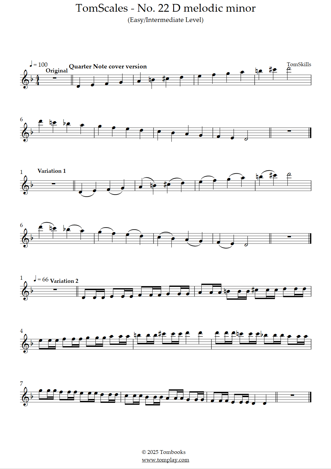 TomSkills : TomScales - N° 22 Ré mineur mélodique (niveau facile/intermédiaire)