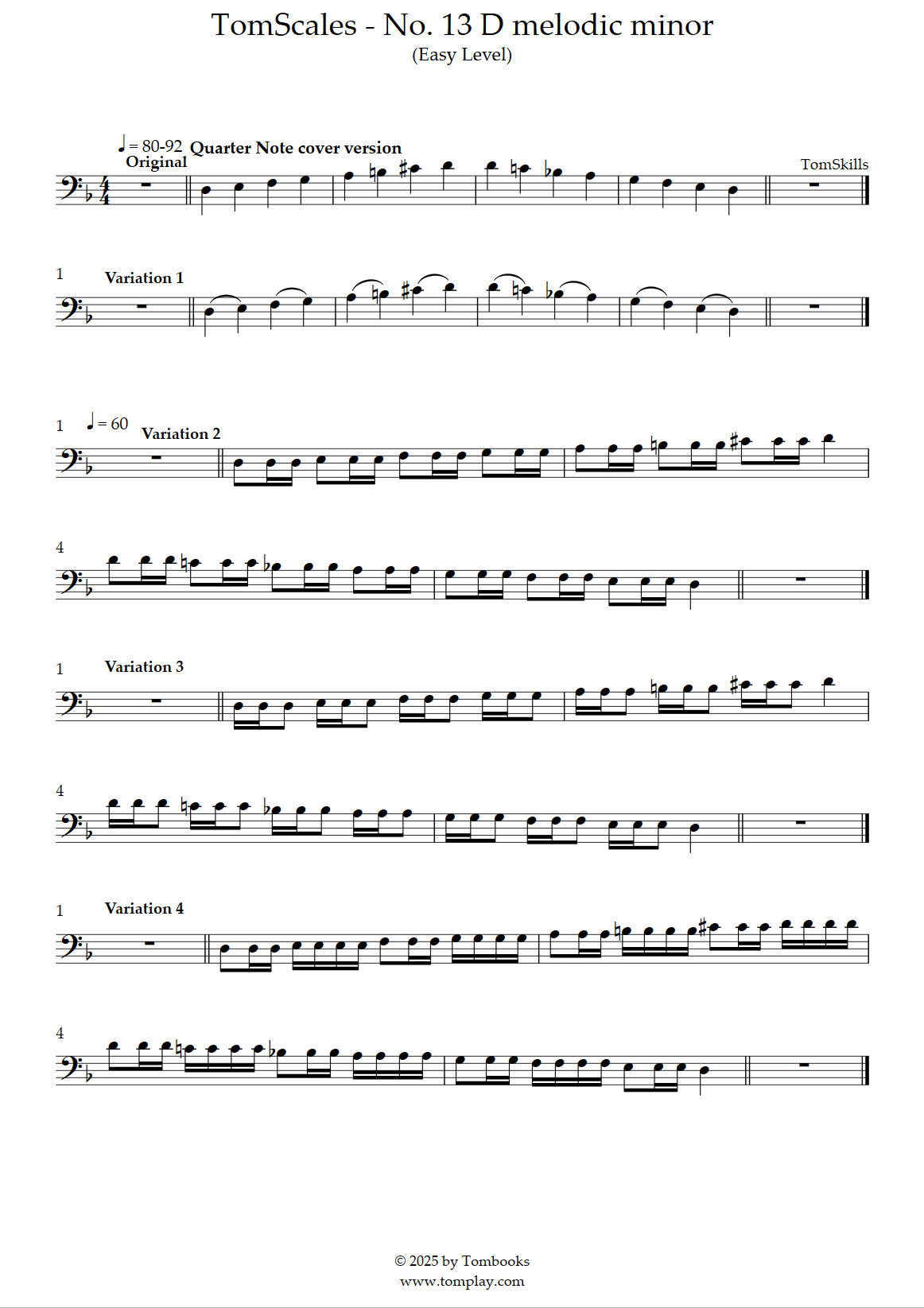 Téléchargez la partition Violoncelle TomScales - N° 13 Ré mineur mélodique (niveau facile)…