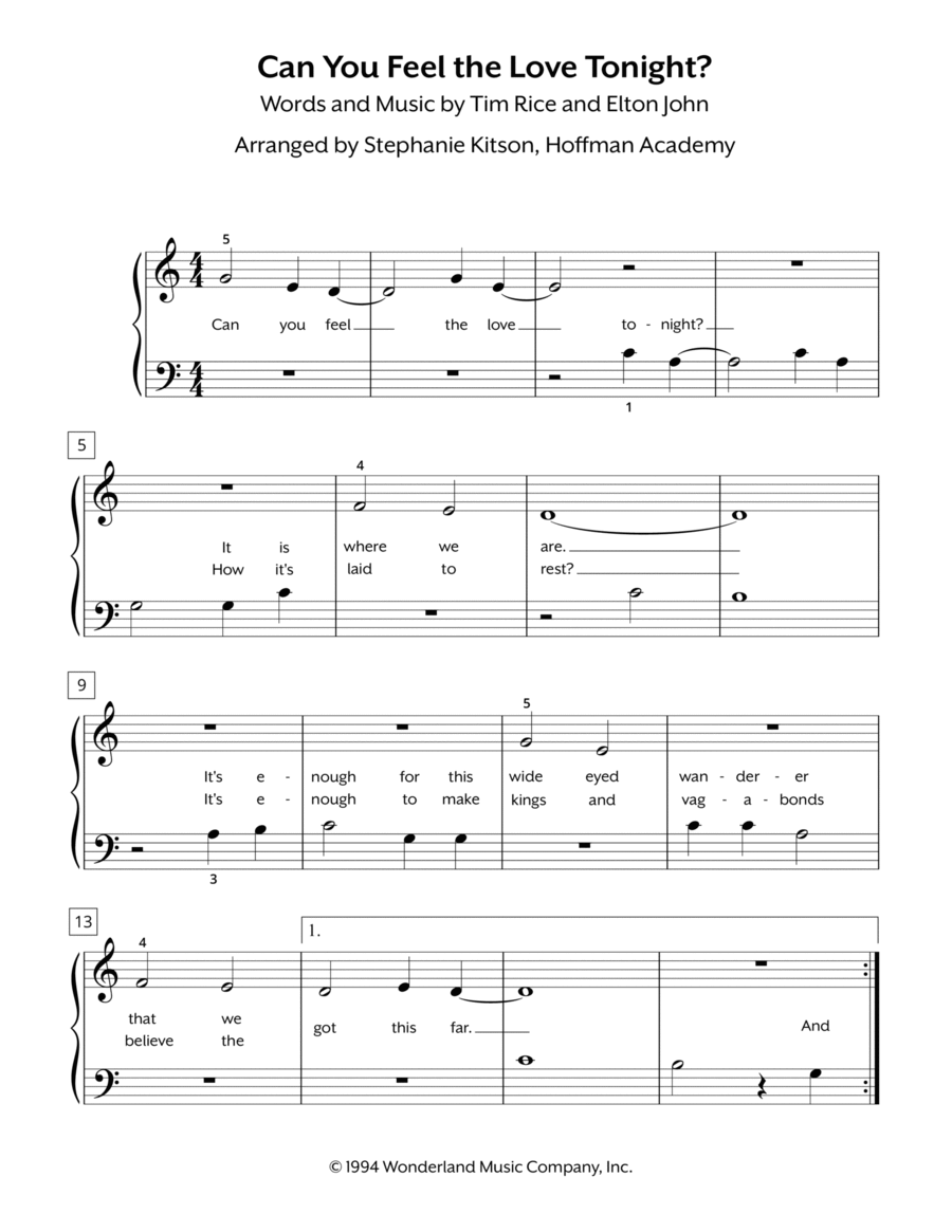 Alto Saxophone,Baritone Saxophone,Piano Accompaniment,Soprano Saxophone,Tenor Saxophone - Level 2 - Digital Download SKU: A0.1230582 By Elton John. By Elton John and Tim Rice. Arranged by Rodrigo Faleiros. Broadway,Chamber,Film/TV,Musical/Show,Pop,Wedding. 8 pages. Rodrigo Faleiros #826292. Published by Rodrigo Faleiros (A0.1230582). This is a new, easy-to-play sax quartet arrangement with piano accompaniment of Can You Feel The Love Tonight from The Lion King, specifically created for celebratory events like weddings. The melody is played by the soprano sax, while the other instruments provide a lush and harmonious accompaniment. This arrangement provides the full score featuring the piano and the parts of soprano, alto, tenor and baritone saxophones. The arrangement has been designed to create a beautiful and emotional performance that will add a touch of magic to any special occasion.
