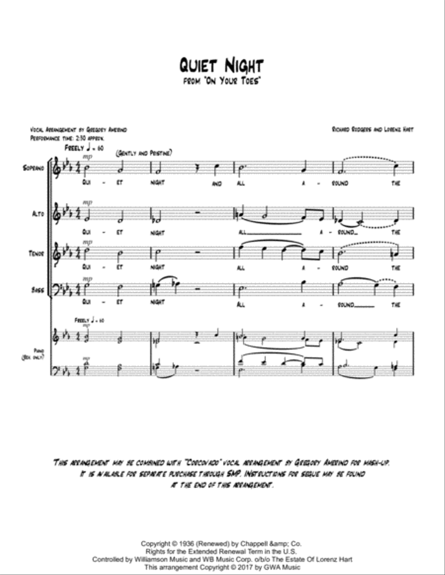 Saxophone Quartet,Woodwind Ensemble Alto Saxophone,Baritone Saxophone,Soprano Saxophone,Tenor Saxophone - Level 2 - Digital Download SKU: A0.1195850 By The Tokens. By Calvin Carter and James Hudson. Arranged by Kevin Hall. Barbershop,Hip-Hop,Pop,R & B,Rock,Standards. 8 pages. Eine kleine Saxmusik #795015. Published by Eine kleine Saxmusik (A0.1195850). One of the most recognizable Doo-Wop songs from the mid-50s, your audience will be singing along as you end your set or gig with this old classic. As soon as people hear the signature bass line played on the bari that starts the song, they'll start tapping their toes and coming over to hear the group perform. This arrangement includes an alternate soprano part for the lead, and an alternate bass sax part for the bari to be able to fit almost any sax quartet configuration. Enjoy!(Copyrighted pieces apparently have some diff. policies from original/public domain:I apologize for the minimum price--it's set by ArrangeMe. Contact me at kevinqhall at netscape dot net, and I'll be happy to give you credit toward another piece.Also, the sample cuts off at 30 secs. I loaded the whole song. If you'd like to hear more of the sample, email me (at the address above), and I'll be happy to send you the sound sample.In addition, I'm unable to edit the title or performer. My preferences (the original title/performer!!) would be:Title: Goodnite, Sweetheart, Goodnite (Goodnight, It's Time To Go) - arr. for Sax Quartet A(S)ATB(Bs)Original Performer: The Spaniels).
