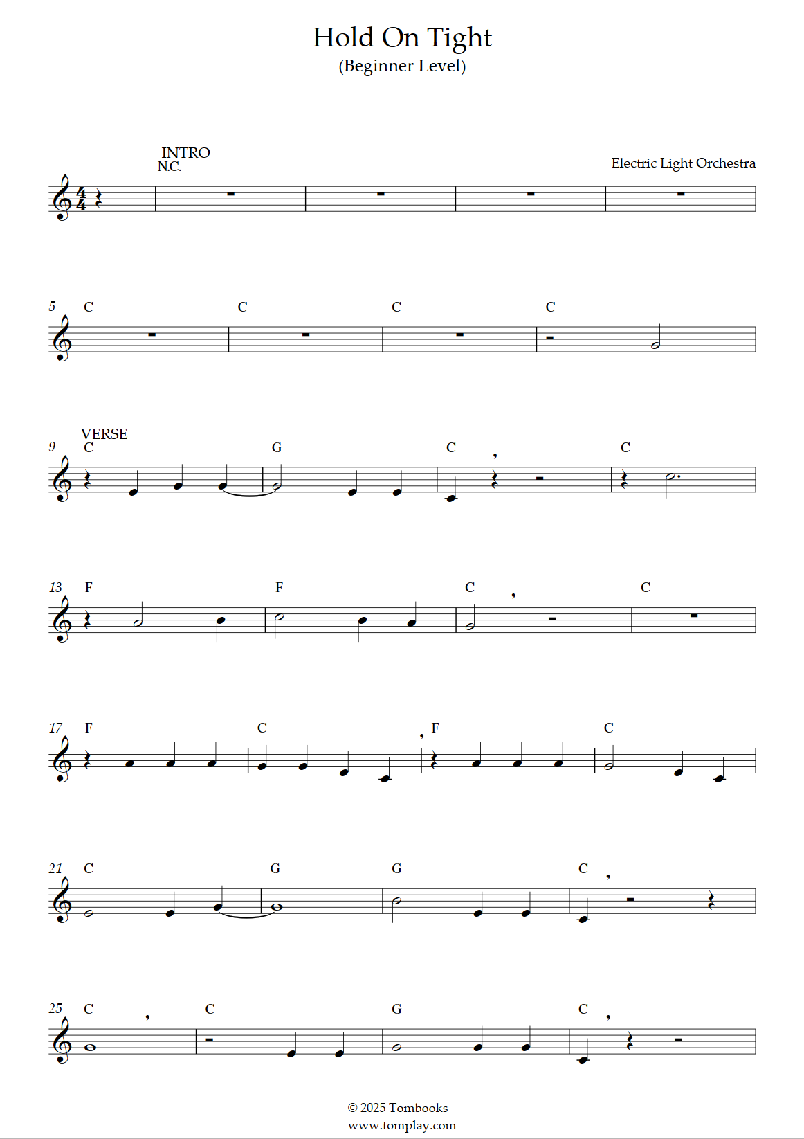 Electric Light Orchestra : Hold On Tight (niveau débutant, sax ténor)