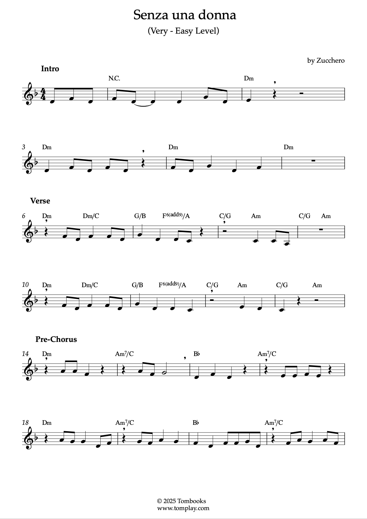 Téléchargez la partition Flûte Senza una donna (Without a Woman) (niveau très facile) de P…