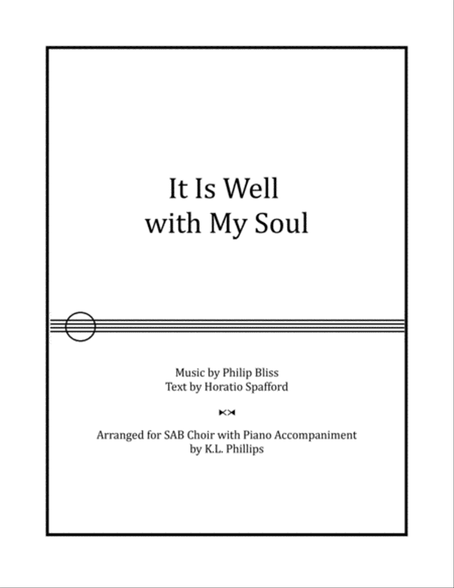 Instrumental Duet,Piano Cello,Instrumental Duet,Piano,Violin - Level 3 - Digital Download SKU: A0.751523 Composed by Horatio Spafford - text and Philip Bliss - music. Arranged by K.L. Phillips. Christian,Contemporary,Praise & Worship,Sacred. Score and parts. 18 pages. K L Phillips #5025903. Published by K L Phillips (A0.751523). This arrangement of It Is Well with My Soul begins in the first verse with peace and calm contentment. It becomes mournful in the second verse and ends with a confident and uplifting reprise of the chorus.The arrangement conveys the text written by Horatio Spafford in 1873. His life had seen much trouble including business losses and losing his 4 year old son to scarlet fever. At the time this hymn was written, he had just lost his four daughters in a tragic accident at sea. In the midst of his pain, he was able to find comfort in his faith in God's love.