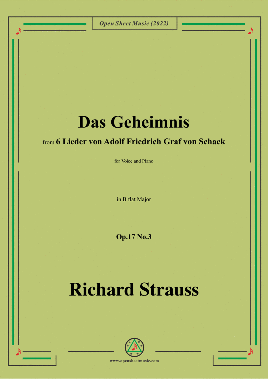 Piano,Vocal,Voice - Level 3 - Digital Download SKU: A0.1216389 Composed by Richard Strauss. Arranged by OSM Press. Classical. Score. 6 pages. Open Cloud #812996. Published by Open Cloud (A0.1216389).