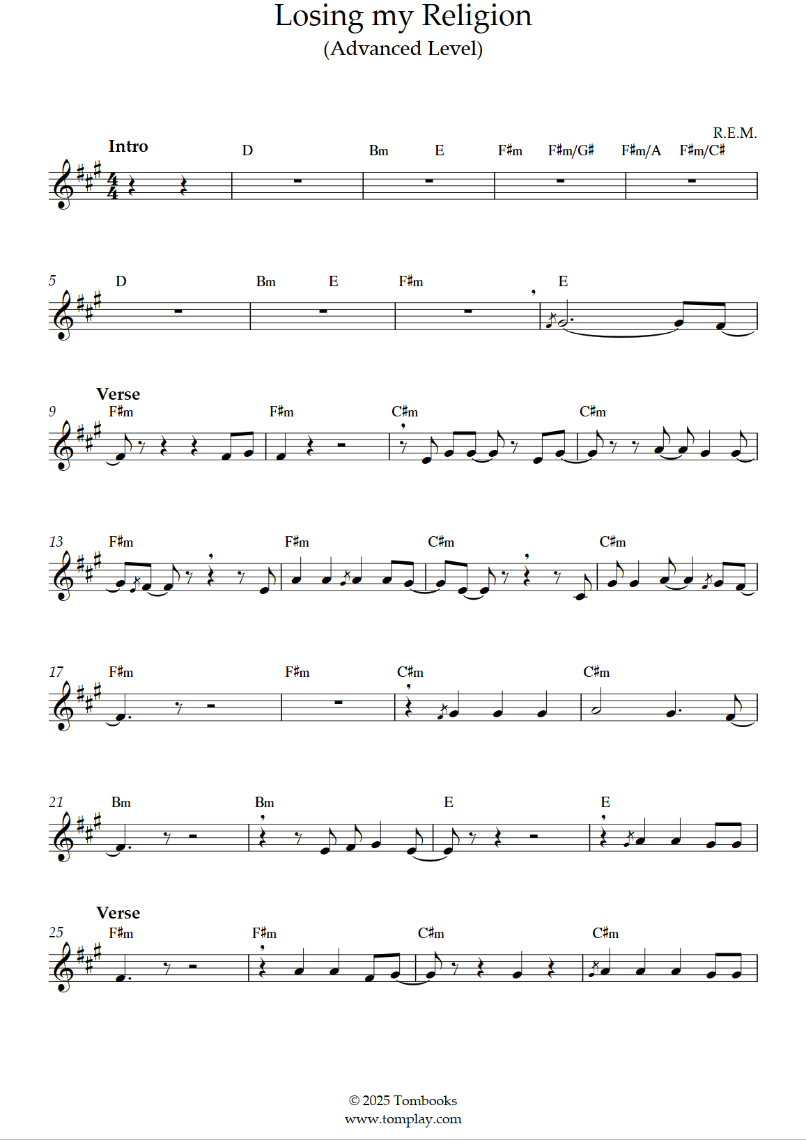 R.E.M. : Losing my Religion (niveau difficile, sax alto)