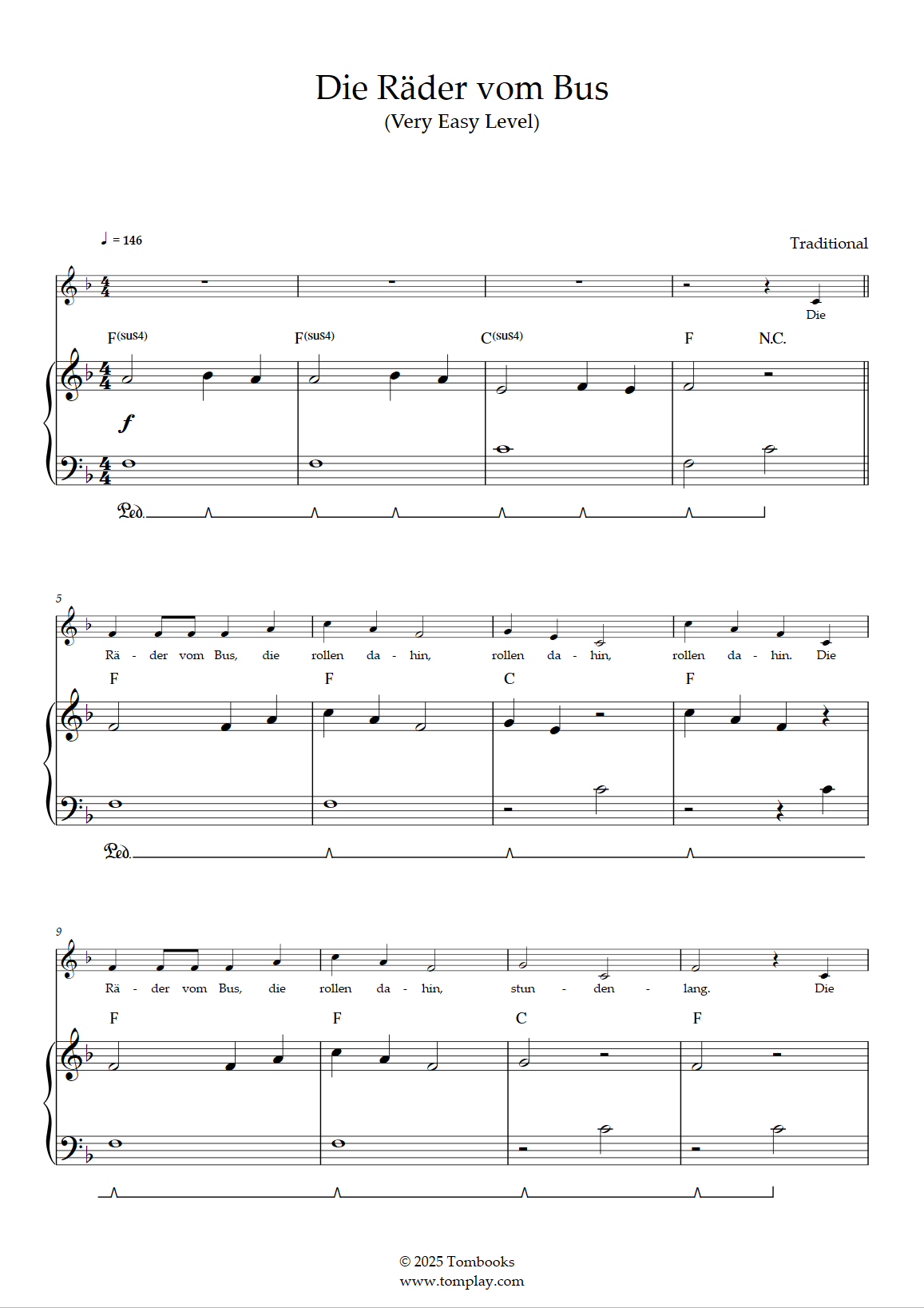 Traditionnel : Die Räder vom Bus (niveau très facile, piano solo)