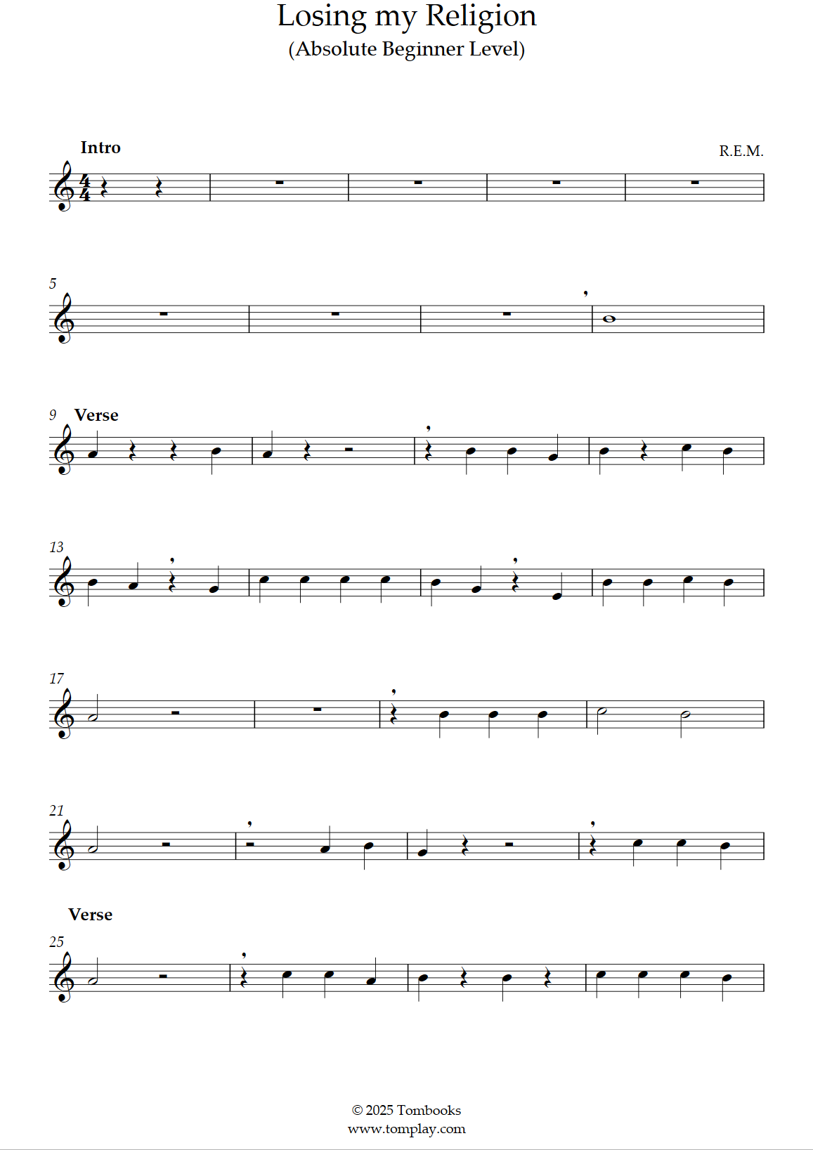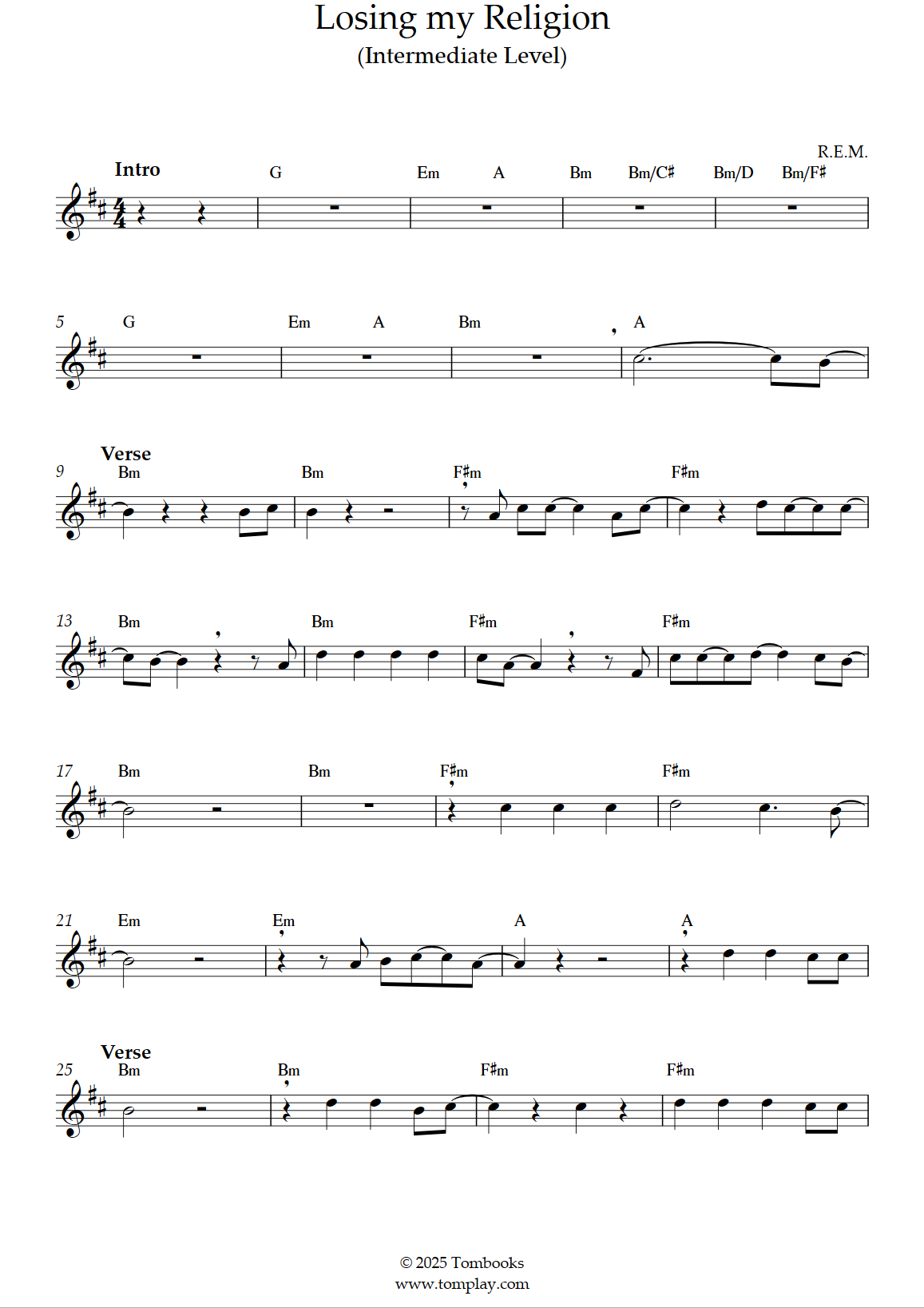R.E.M. : Losing my Religion (niveau facile, sax alto)