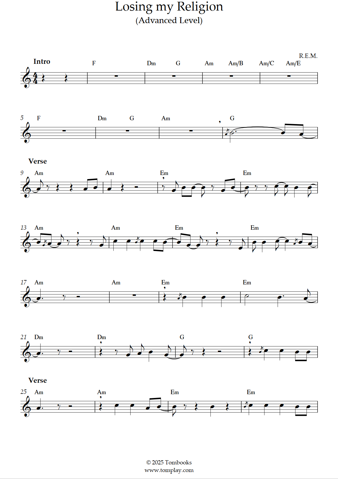 Téléchargez la partition Flûte Losing my Religion (niveau difficile) de R.E.M.. Partition …