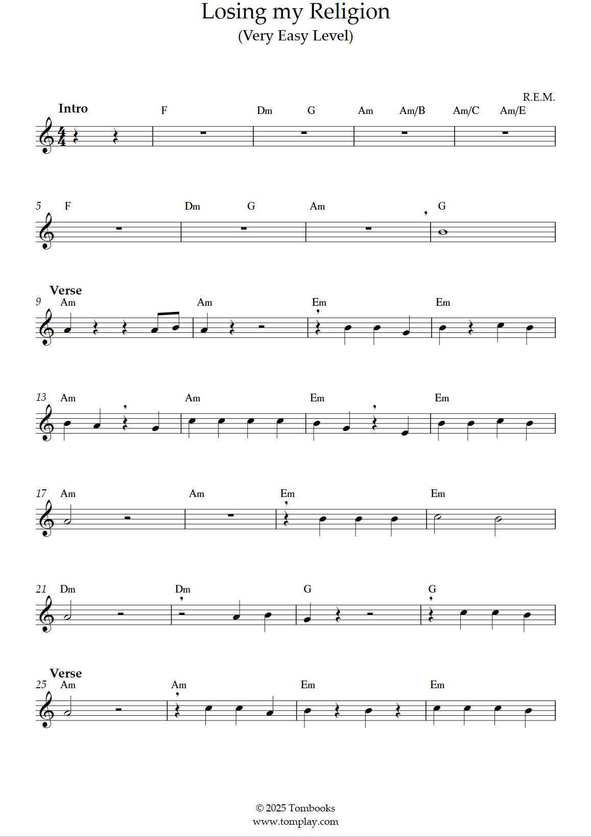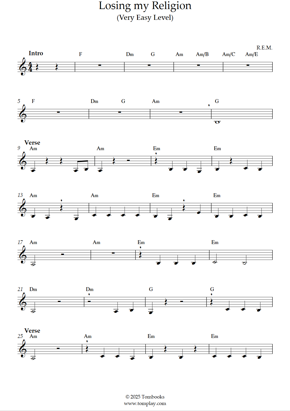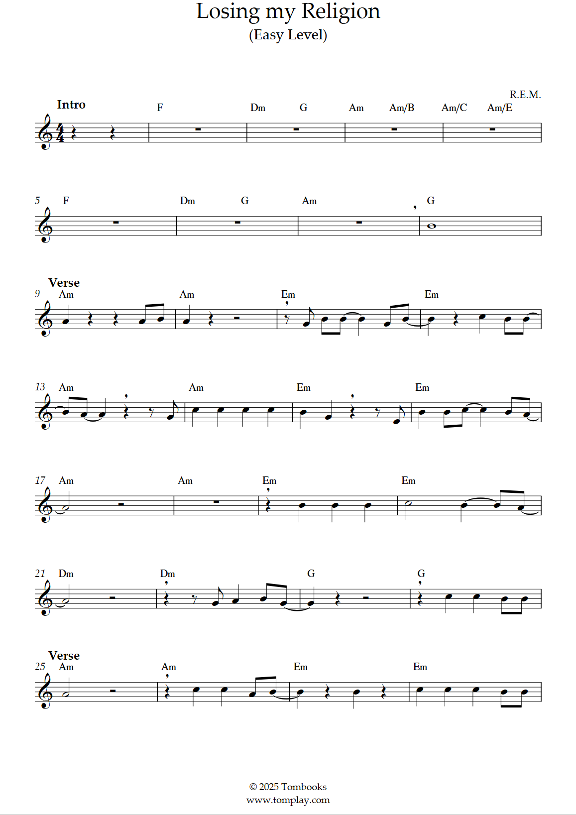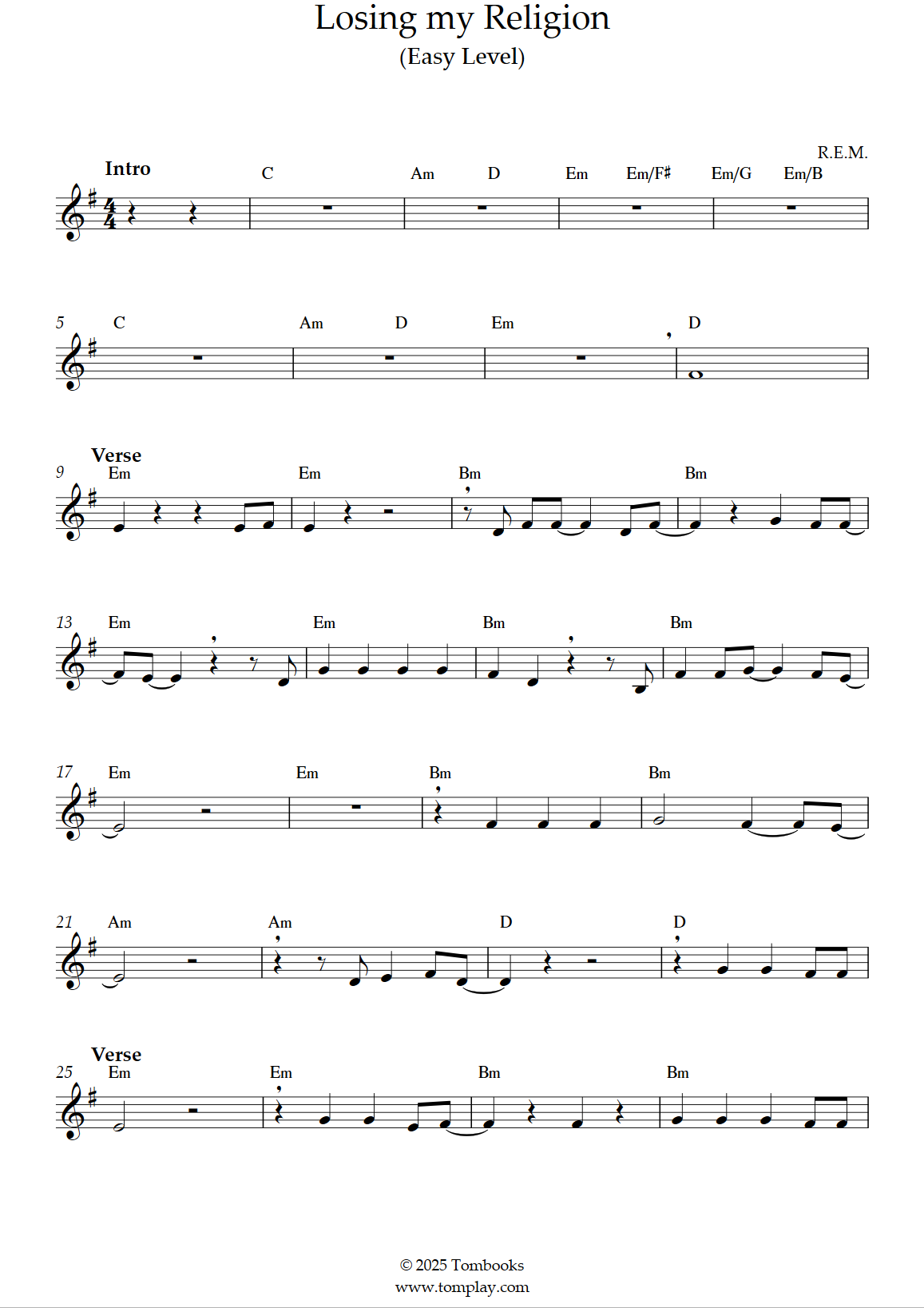 R.E.M. : Losing my Religion (niveau facile)