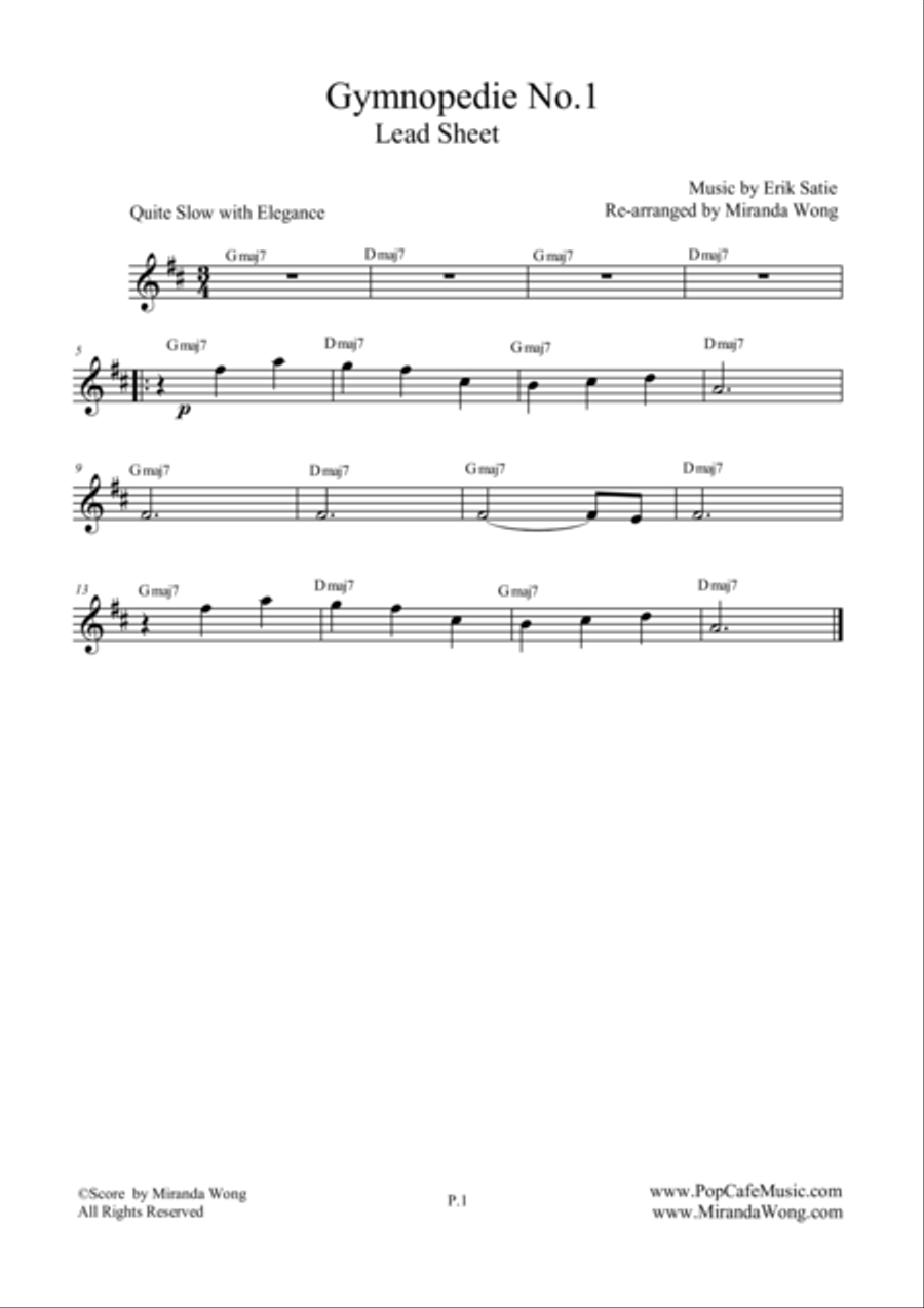 Composed by Erik Satie (1866-1925). Arranged by Miranda Wong. For Piano, Flute, Oboe, Saxophone, Recorder, Violin. Instructional, Children's Music, Movies/TV, Easter, Wedding. Early Intermediate. Sheet Music Single, Lead Sheet. Miranda Wong #MS00457. Publ