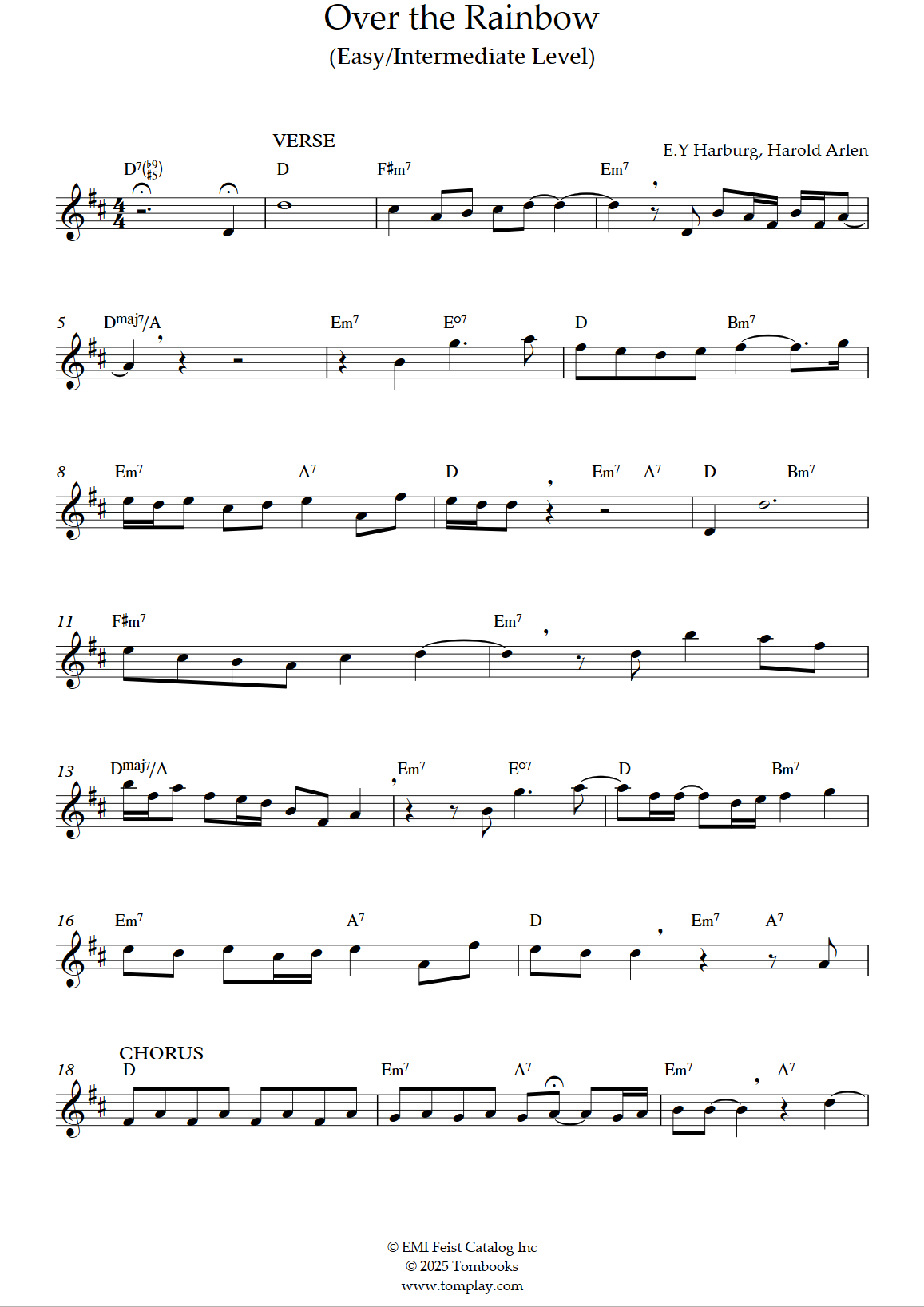 Téléchargez la partition Saxophone Over the Rainbow (niveau facile/intermédiaire, sax sopr…