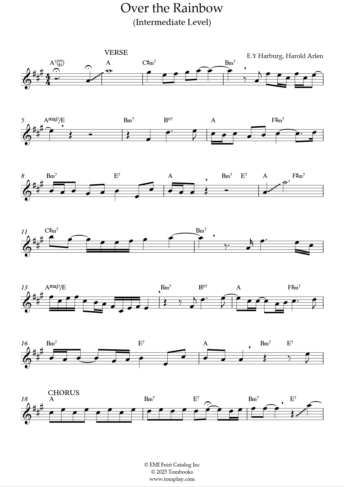 Téléchargez la partition Saxophone Over the Rainbow (niveau intermédiaire, sax alto) de Ri…