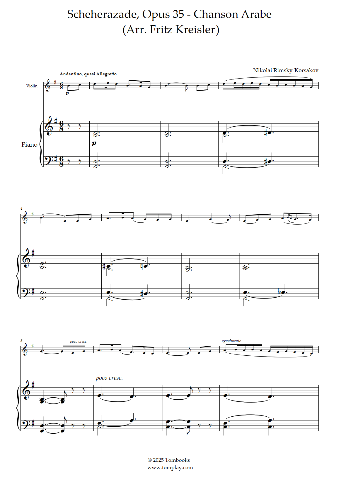 Korsakov : Scheherazade, Opus 35 - Chanson Arabe (Arr. Fritz Kreisler)