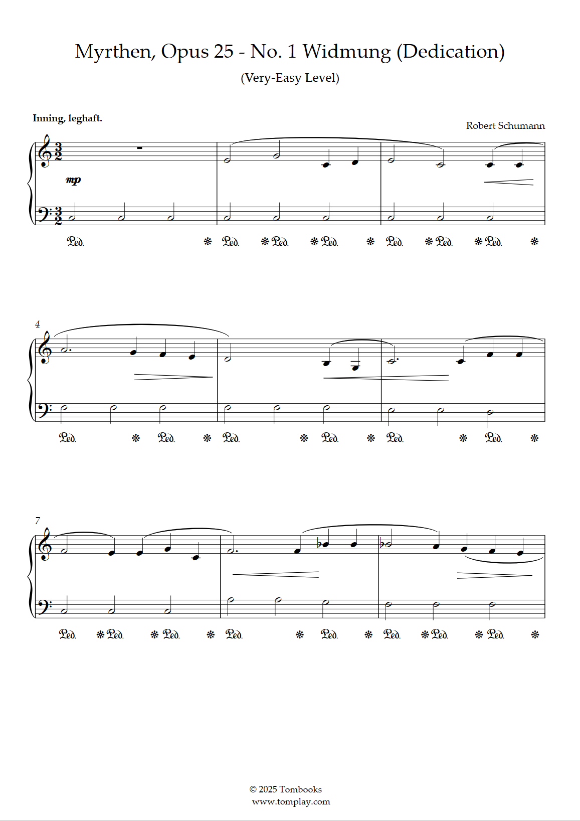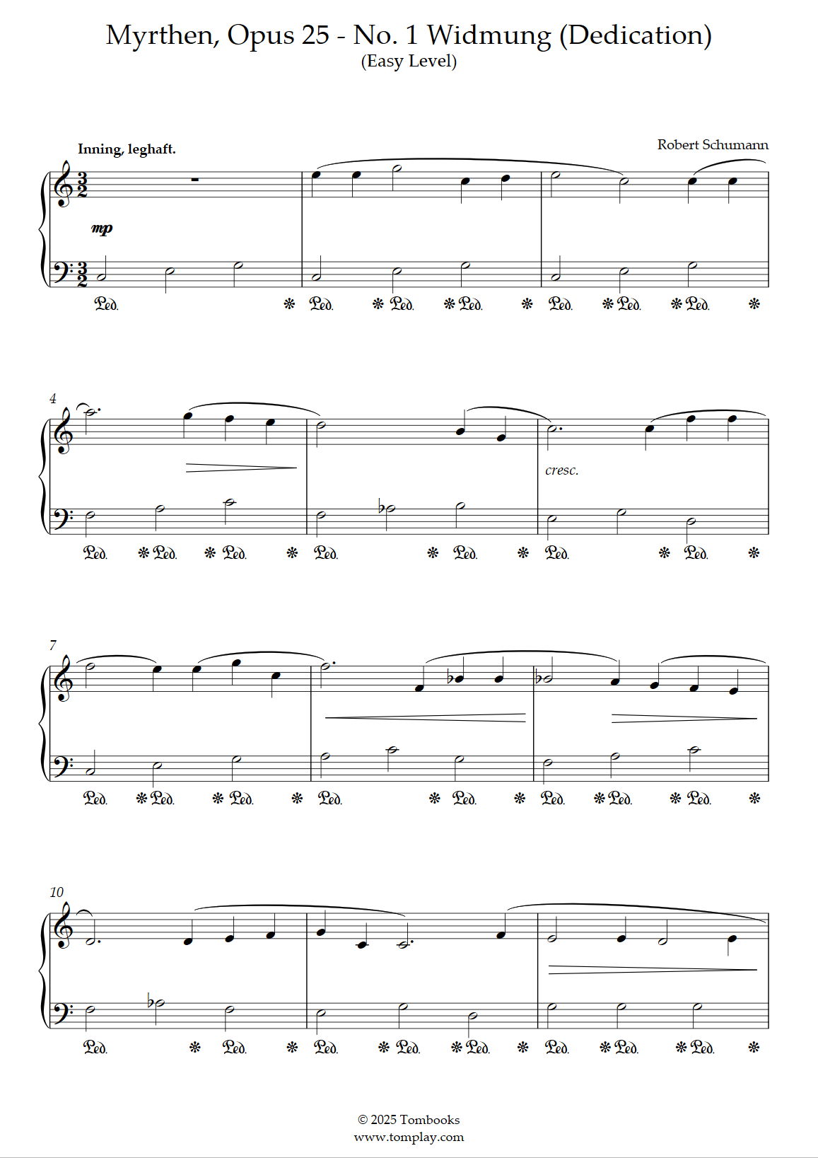 Téléchargez la partition Piano Myrthen, Opus 25 - N° 1 Widmung (niveau facile) de Schumann…