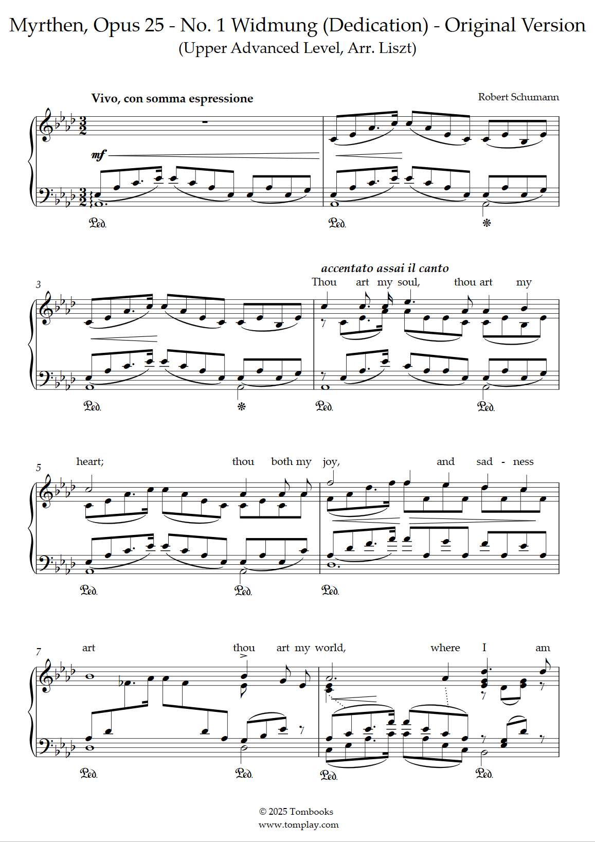 Schumann Robert : Myrthen, Opus 25 - N° 1 Widmung - Version originale (niveau avancé, Arr. Liszt)