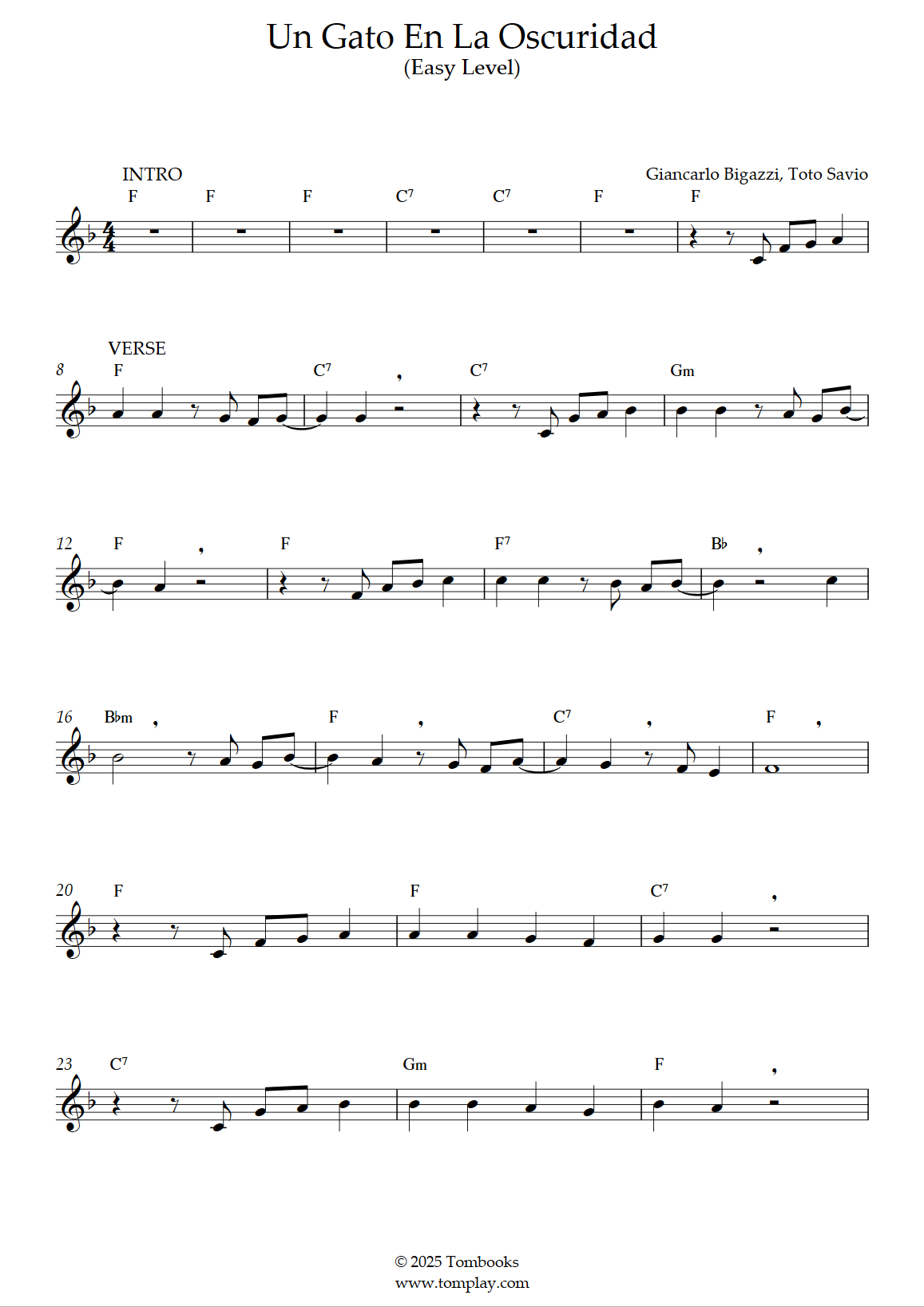 Roberto Carlos : Un gato en la oscuridad (niveau débutant, sax alto)