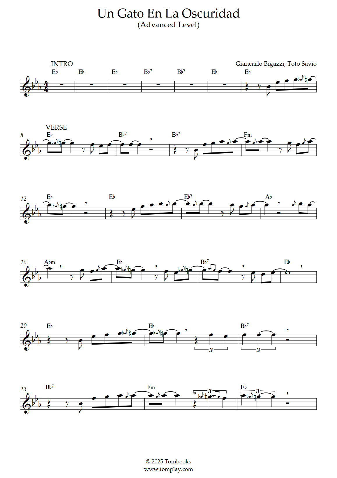 Roberto Carlos : Un gato en la oscuridad (niveau difficile, sax ténor)