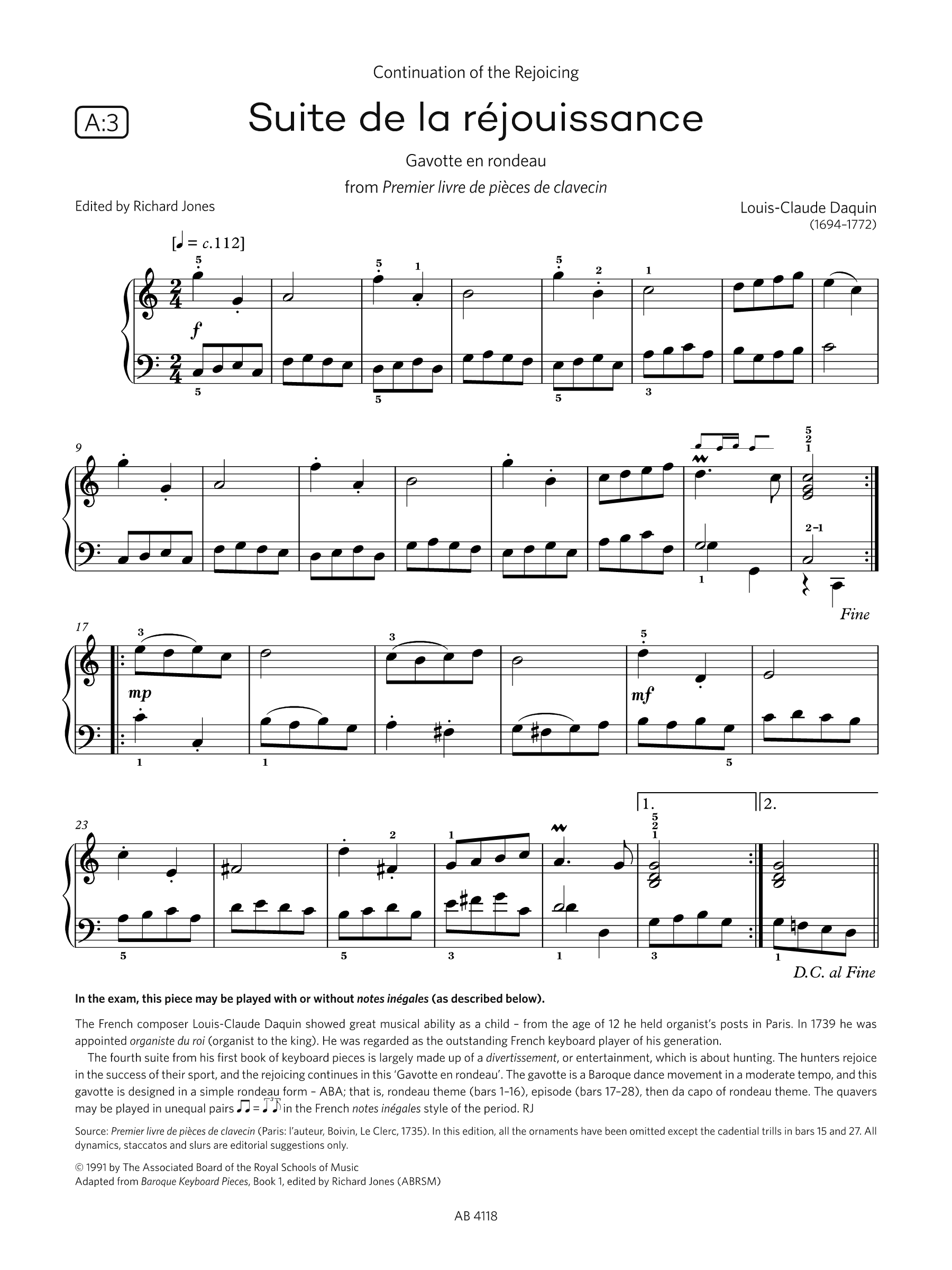 Louis Claude Daquin : Suite de la réjouissance (Gavotte en rondeau from Premier livre de pièces de clavecin) (ABRSM Piano Exams from 2025 & 2026, Grade 2, A:3)