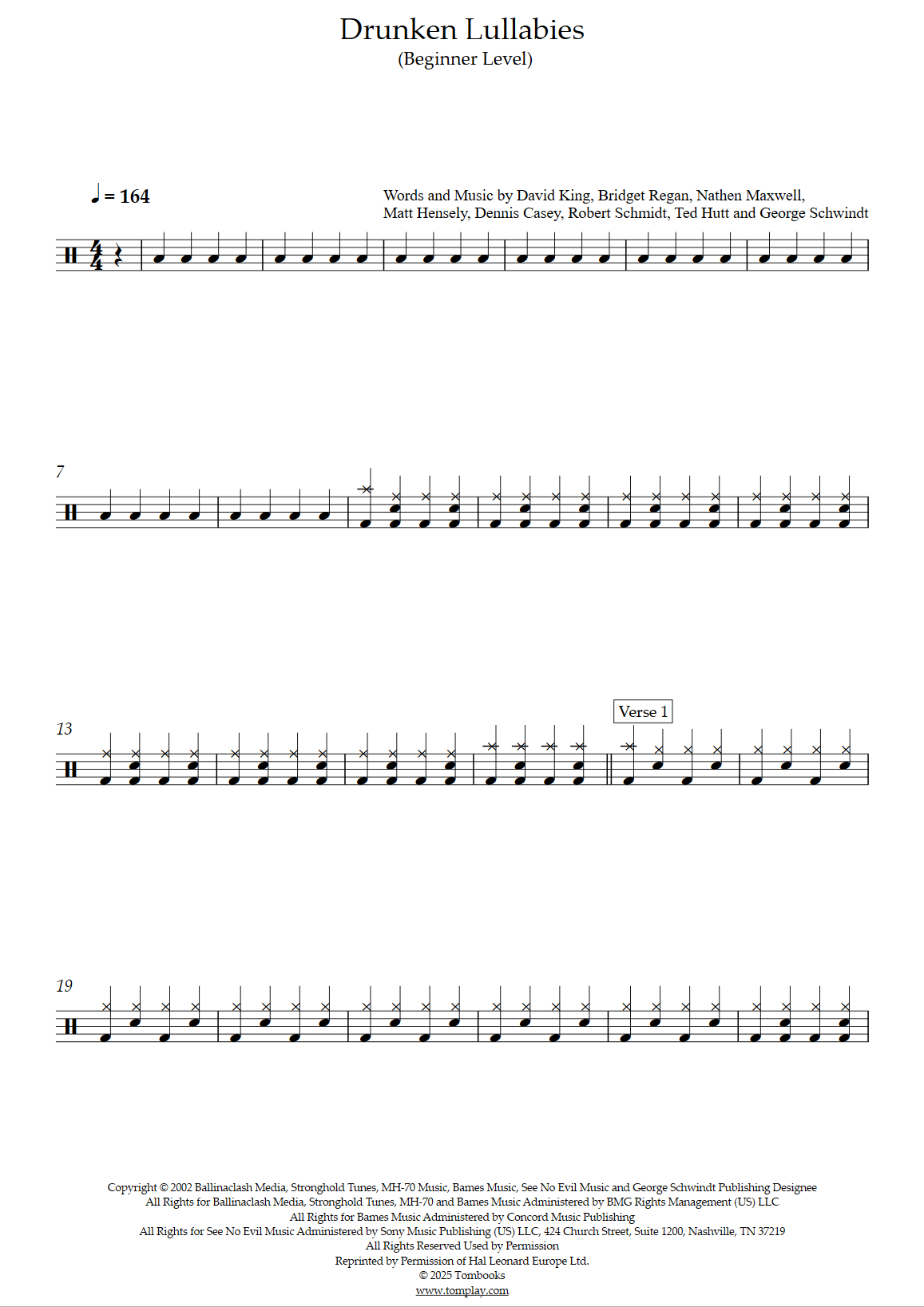 Téléchargez la partition Batterie Drunken Lullabies (niveau débutant) de Flogging Molly. P…