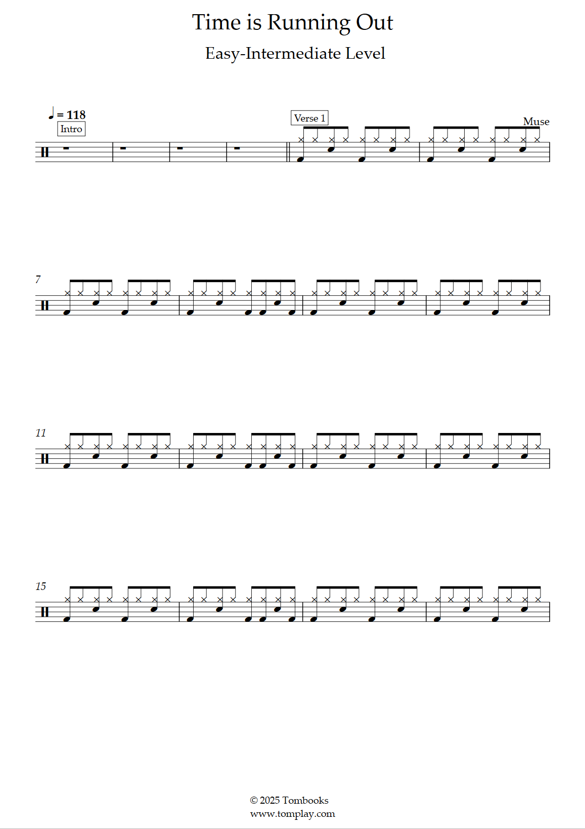 Téléchargez la partition Batterie Time Is Running Out (niveau facile/intermédiaire) de Mus…