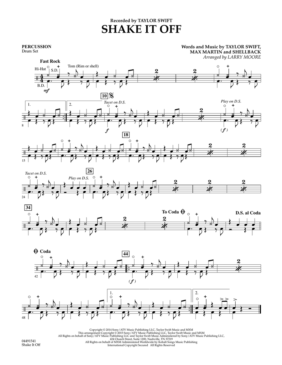 Choral Choir,Choral,SATB Chorus - Level 3 - Digital Download SKU: A0.1449837 By Taylor Swift. By Johan Schuster, Max Martin, Shellback, and Taylor Swift. Arranged by Christopher Wormald. Pop,Singer/Songwriter. 16 pages. Christopher Wormald #1029603. Published by Christopher Wormald (A0.1449837). A highly effective, entirely faithful transcription in the original key of G Major, arranged for SATB choir and piano accompainment but with a Drum Kit part needed for the arrangement to succeed. All of the vocal lines are transcribed exactly as sung, there are sections where the choir (and audience) clap homophonically and the piano part recreates exactly the backing of the original in every way.