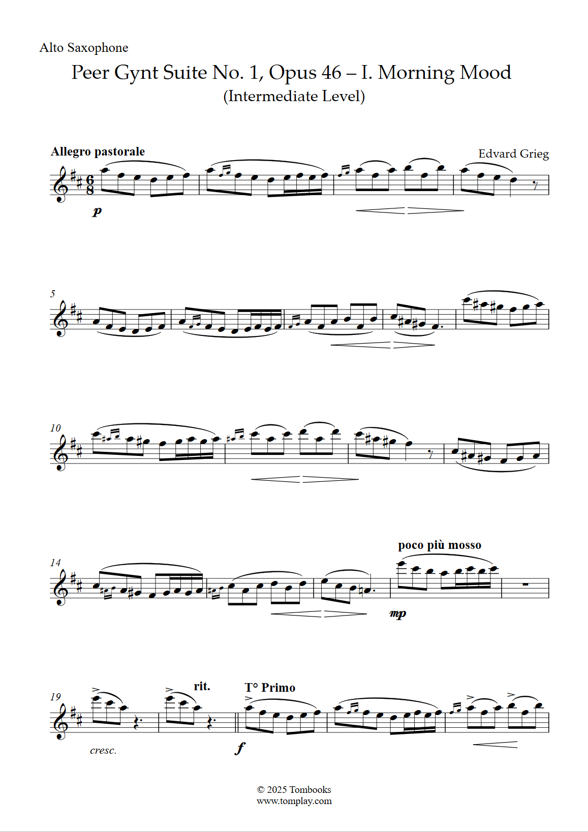 Grieg : Suite de Peer Gynt n° 1, Opus 46 – I. Au matin (niveau intermédiaire, sax alto)