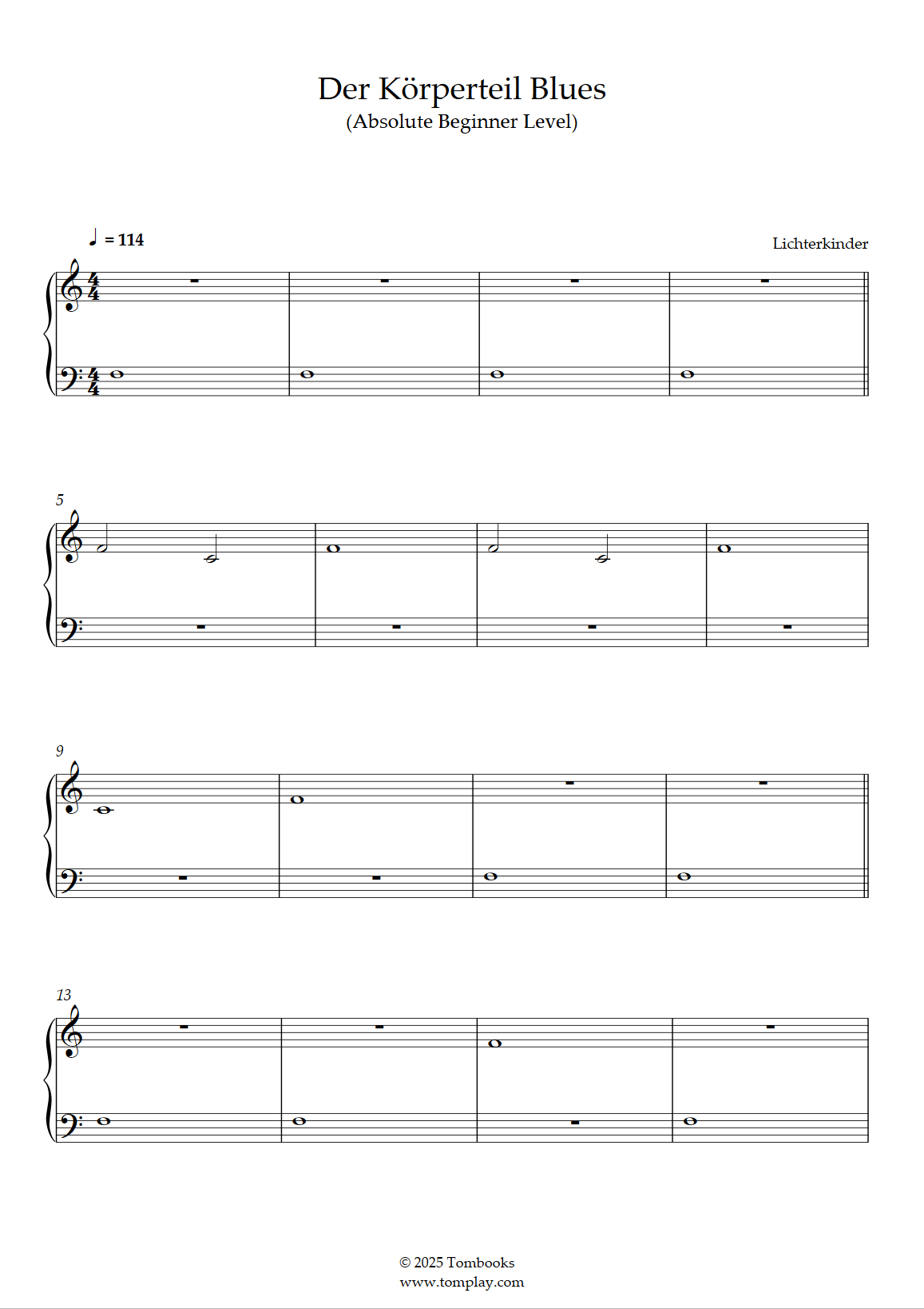 Téléchargez la partition Piano Der Körperteil Blues (niveau débutant absolu) de Lichterkin…