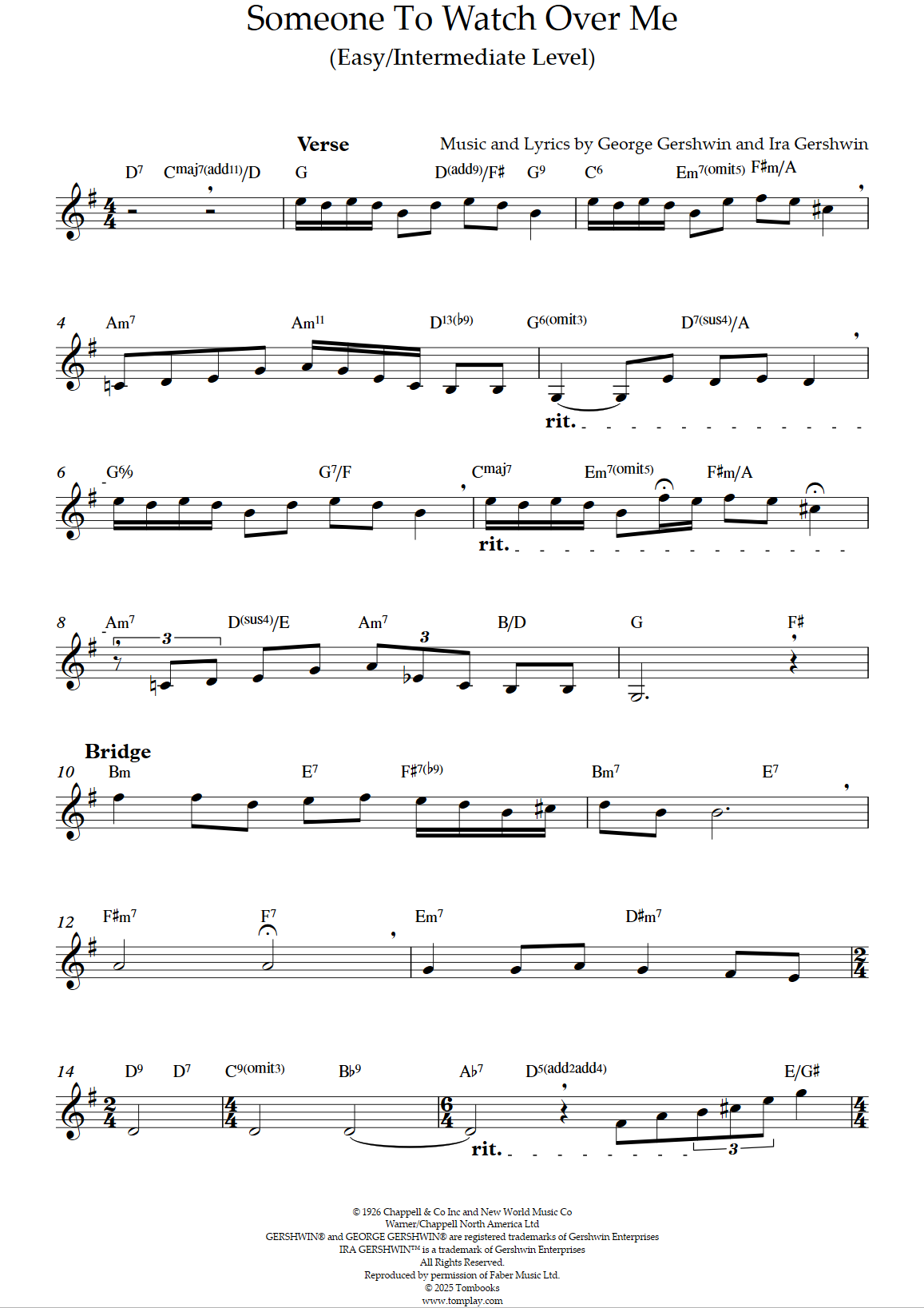 Téléchargez la partition Saxophone Someone To Watch Over Me (niveau facile/intermédiaire, …