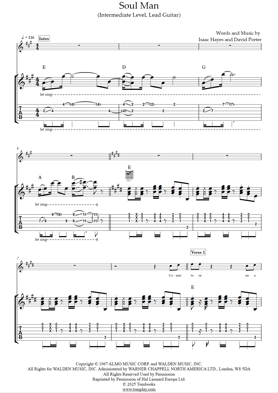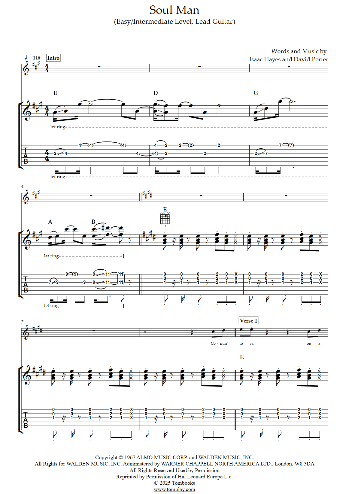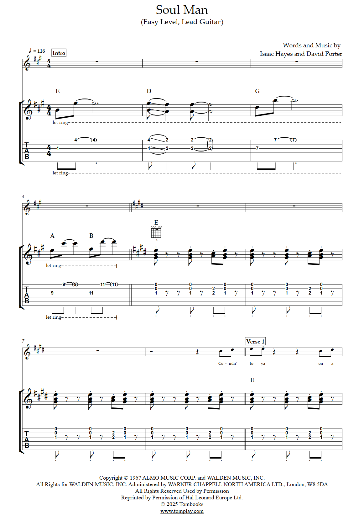 Téléchargez la tablature et la partition Guitare Soul Man (niveau facile, lead guitar) de …