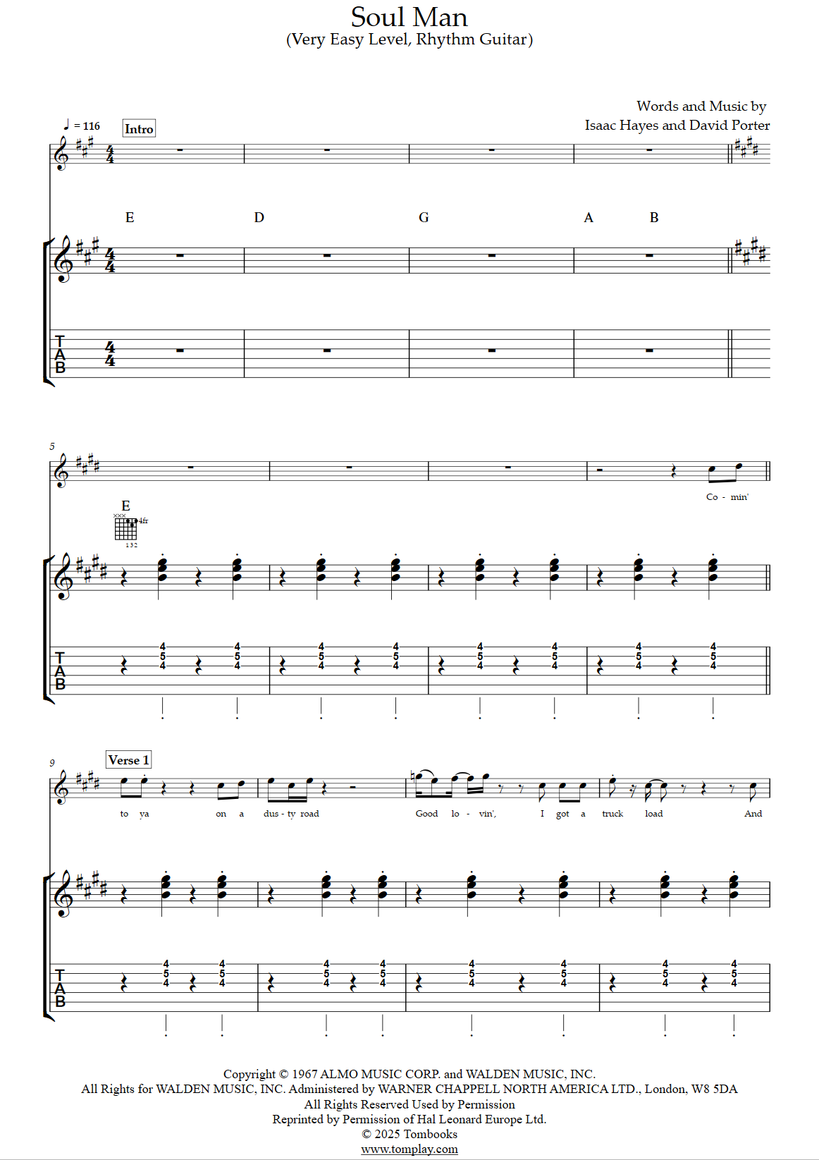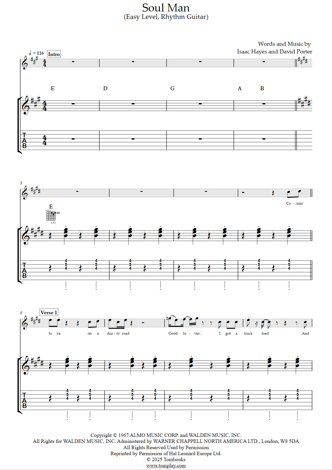 Téléchargez la tablature et la partition Guitare Soul Man (niveau très facile, rhythm guit…