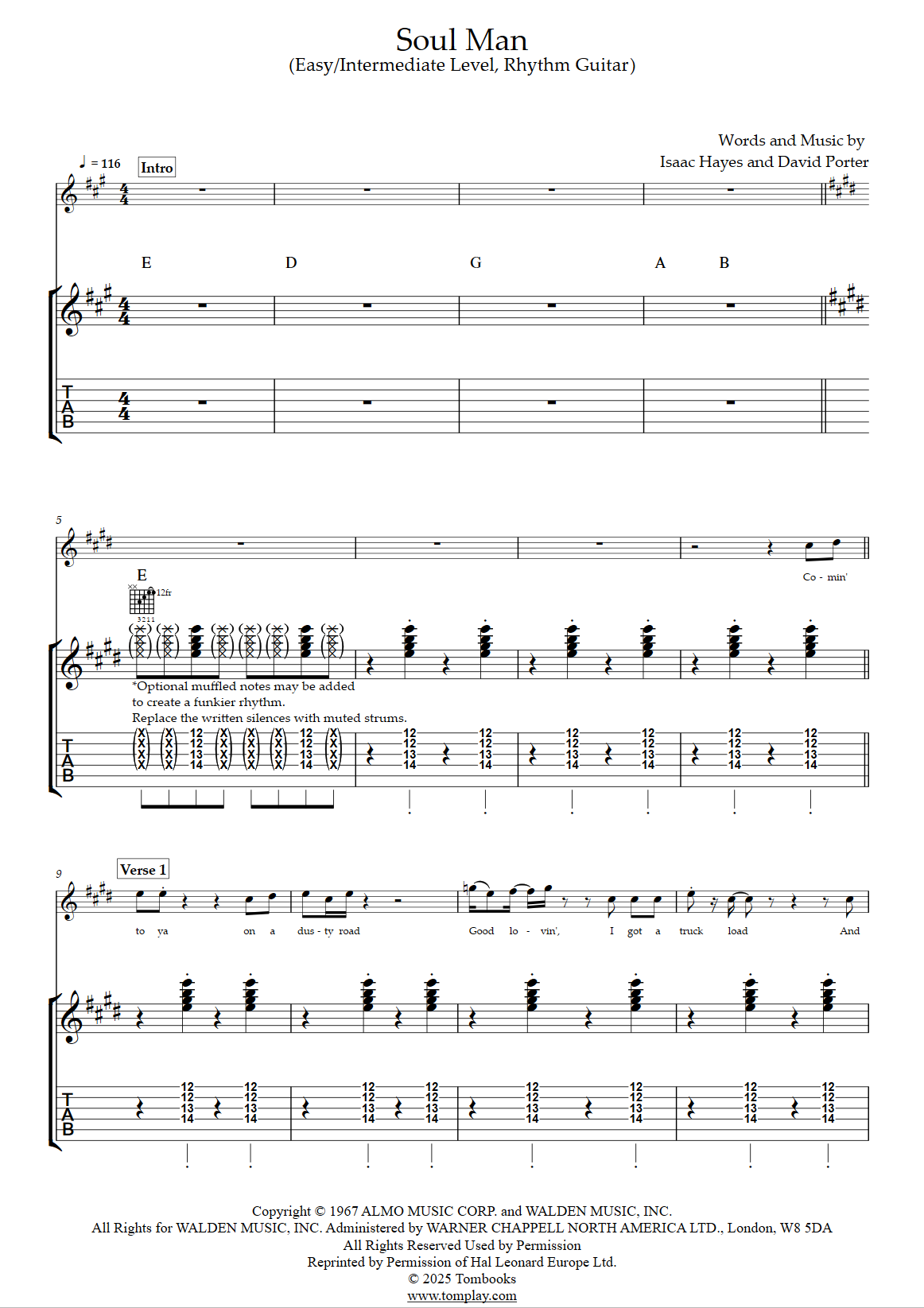 Téléchargez la tablature et la partition Guitare Soul Man (niveau facile, rhythm guitar) d…
