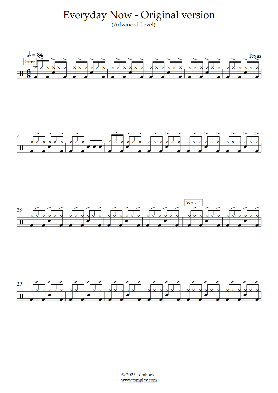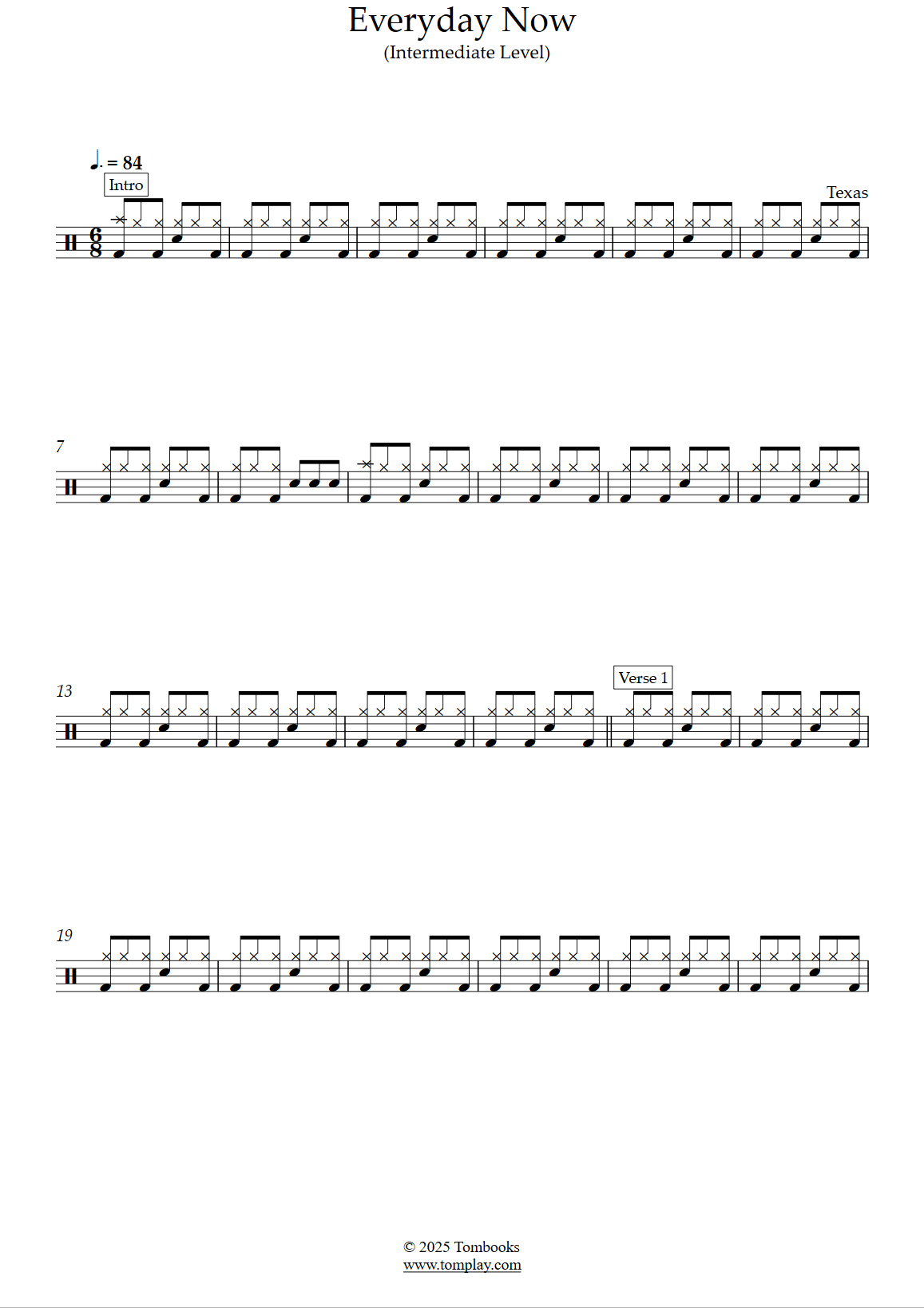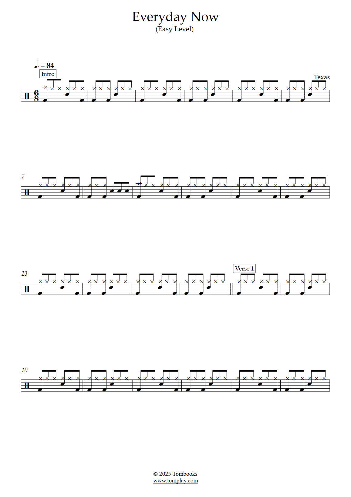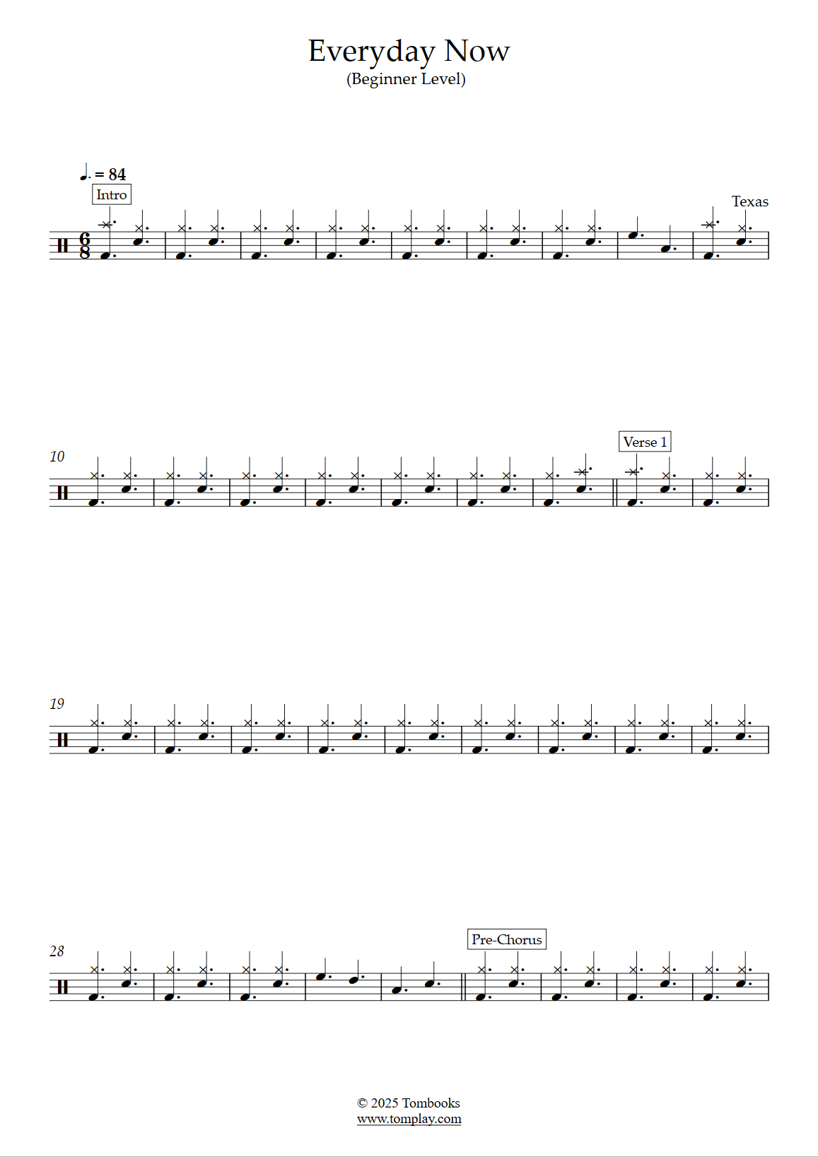 Téléchargez la partition Batterie Everyday Now (niveau facile) de Texas. Partition avec au…