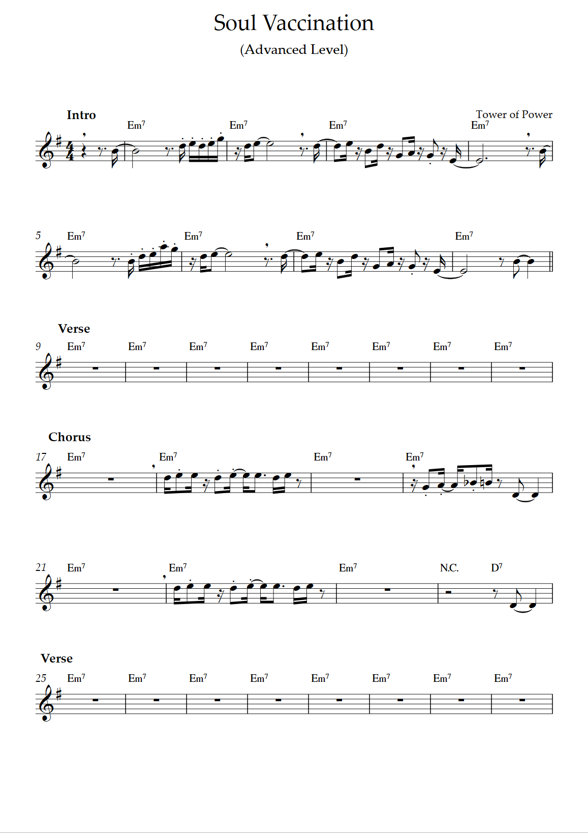 Tower Of Power : Soul Vaccination (niveau difficile, sax soprano)