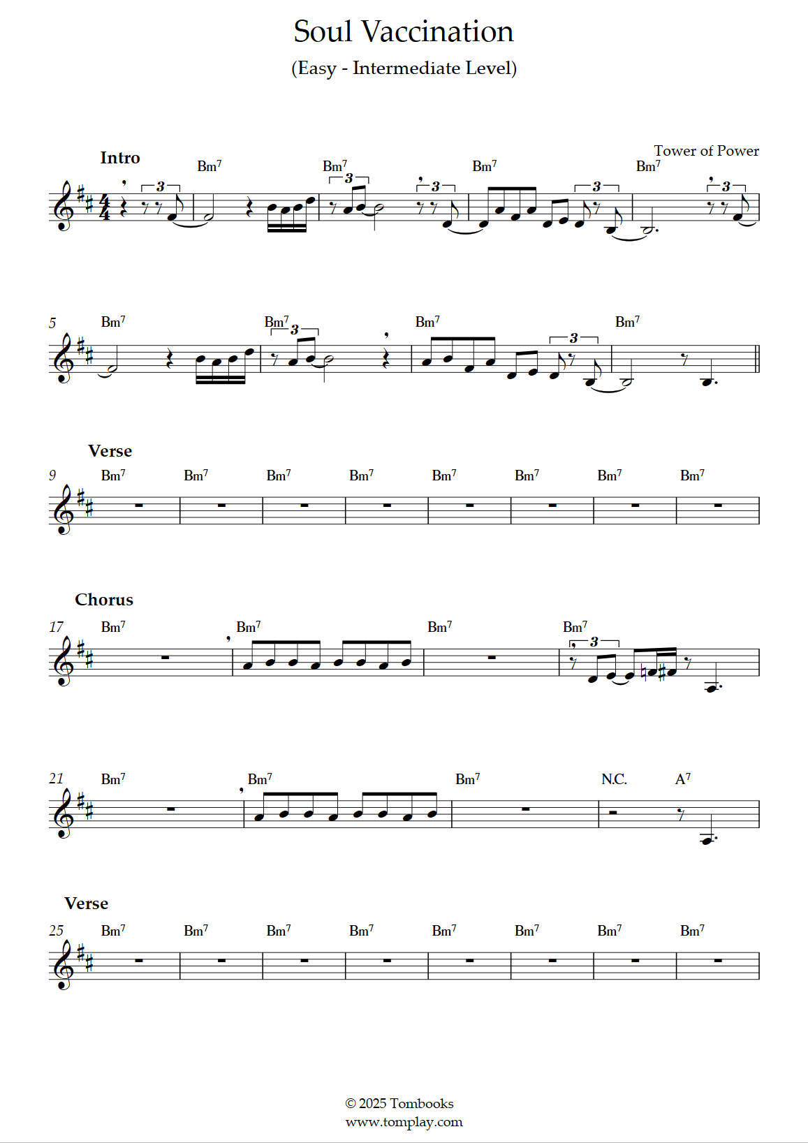 Téléchargez la partition Saxophone Soul Vaccination (niveau difficile, sax alto) de Tower …