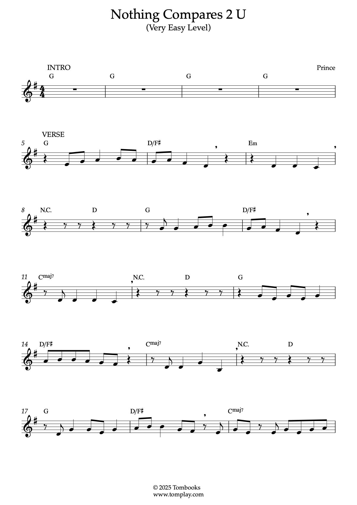 Téléchargez la partition Trompette Nothing Compares 2 U (niveau facile) de Prince. Partiti…