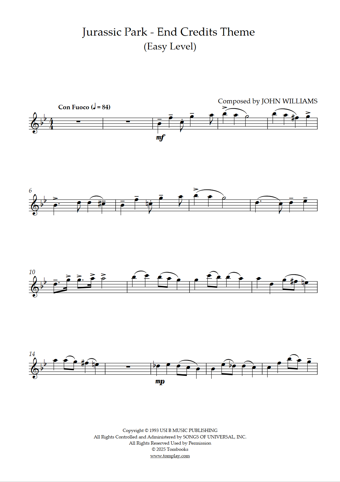 John Williams : Jurassic Park - Thème End Credits (niveau débutant, sax alto)