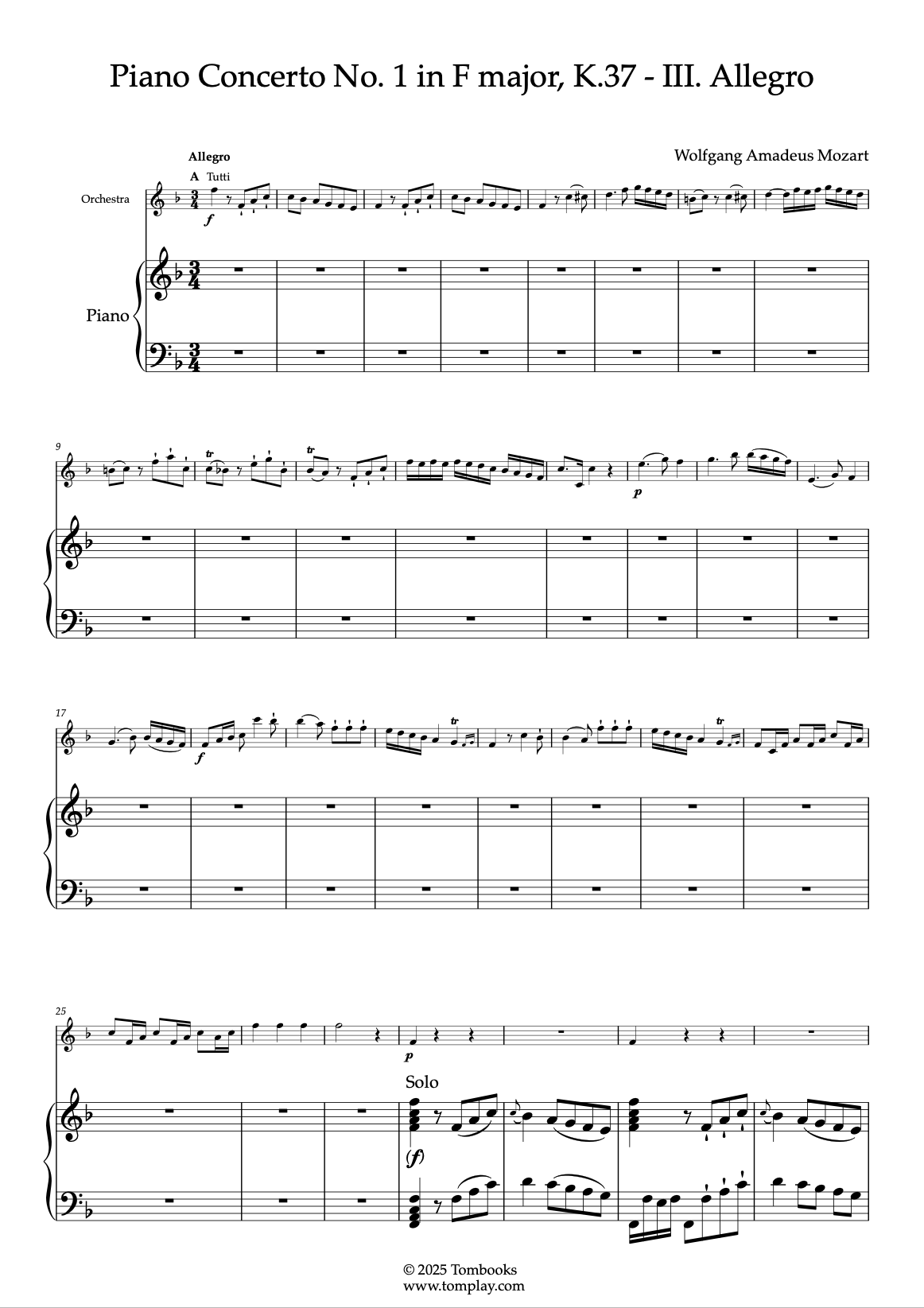 Téléchargez la partition Piano Concerto pour piano n° 1 en fa majeur, K.37 - III. Allegro …