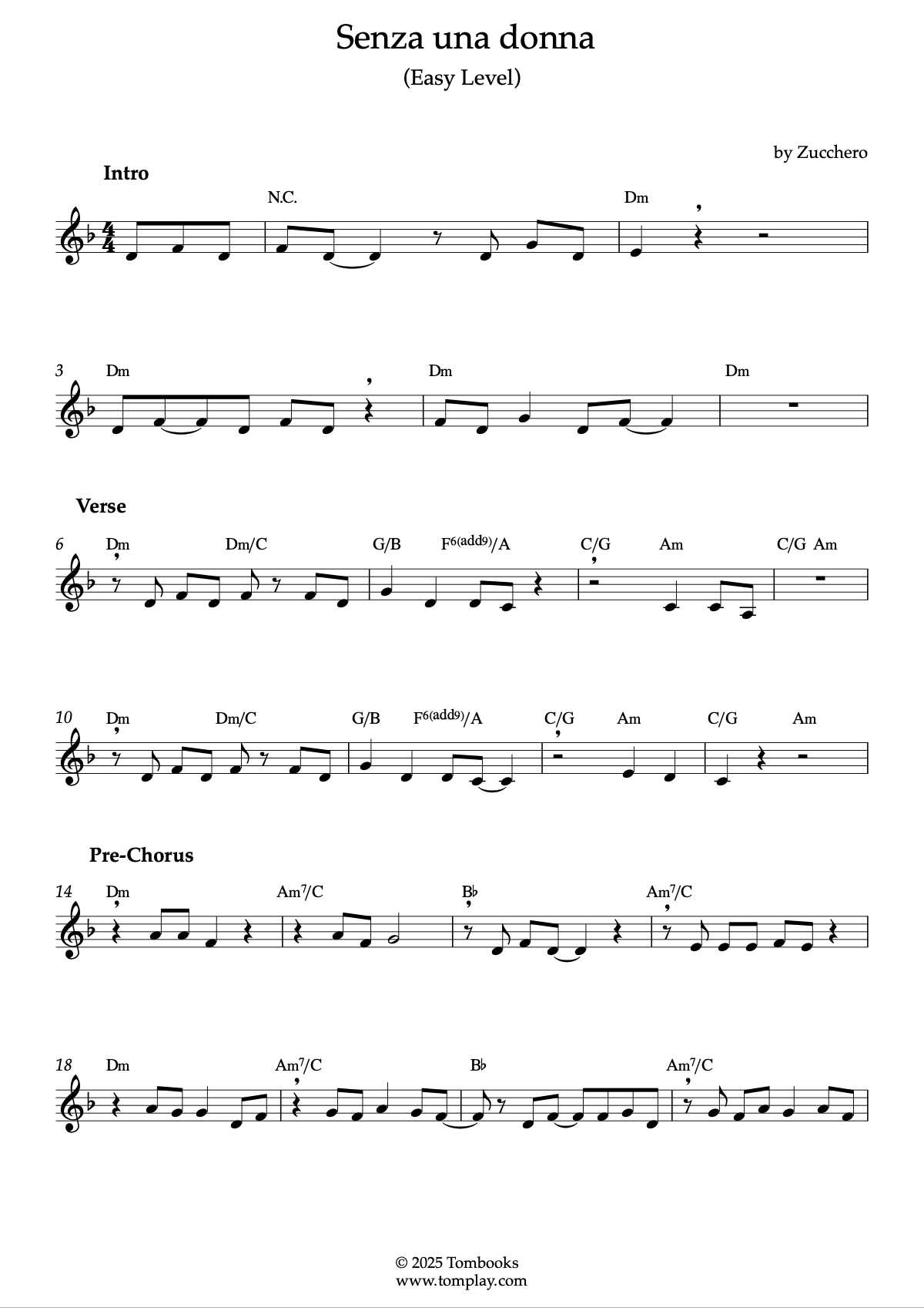 Téléchargez la partition Trompette Senza una donna (Without a Woman) (niveau facile) de Pa…