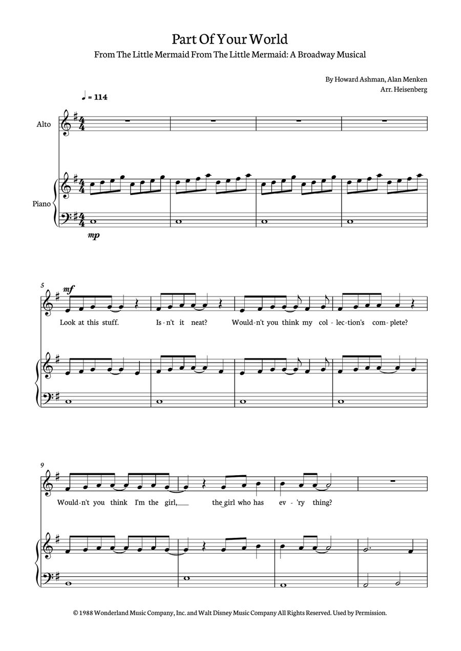 C Instrument - Level 1 - Digital Download SKU: A0.1241978 Composed by Alan Menken and Howard Ashman. Arranged by Valdir Maia. Broadway,Children,Film/TV,Musical/Show,Pop,Singer/Songwriter. Lead Sheet / Fake Book. 3 pages. Valdir Maia #837336. Published by Valdir Maia (A0.1241978). Part Of Your World, from the Little Mermaid new movie in an arrangement for solo instrument with CHORDS in the key of:A, Ab, B, Bb, C (lower), C, D (Lower), D, E (lower), E, Eb (lower), Eb, F (lower), F, GTo see other arrangements, check out my selling page and follow me at www.youtube.com/@easysheetmusic.