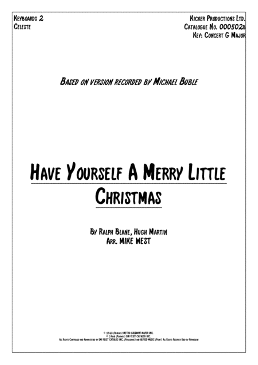 Vocal Solo,Voice - Level 2 - Digital Download SKU: A0.881159 By Colbie Caillat. By Hugh Martin and Ralph Blane. Arranged by Rebecca de Bruin. Jazz. 3 pages. Rebecca de Bruin #3219243. Published by Rebecca de Bruin (A0.881159). Music by Hugh Martin and Lyrics by Ralph Blane. Arranged by Boo de Bruin. 3 pages for Sweet Adelines (ladies' barbershop) quartet. (Tenor, lead, baritone, bass are roughly equivalent to SSAA). Listed by ASCAP as the world's third most played Christmas song, and made famous by Frank Sinatra and Judy Garland. An easy close-harmony arrangement with a strong barbershop flavour. Contains a small bass (low alto) solo. Also available for TTBB in Bb.Vocal ranges are:Tenor: C4 - Eb5 (middle C to Eb above high C)Lead: Ab3 - C5 (A below middle C to high C)Baritone: Bb3 - Ab4 (Bb below middle C to Ab above middle C)Bass: F3 - D4 (F below middle C to D above middle C)Price is for a quartet, and entitles you to print four copies. If purchasing for a larger ensemble, please buy one copy per four singers.