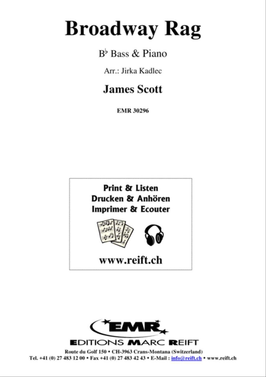Bb Bass & Piano - Grade 4 - Digital Download SKU: R0.30296 Composed by James Scott. Arranged by Jirka Kadlec. Bb Bass & Piano. Score and parts. 12 pages. Duration 3'02. Editions Marc Reift - Digital #30296. Published by Editions Marc Reift - Digital (R0.30296).