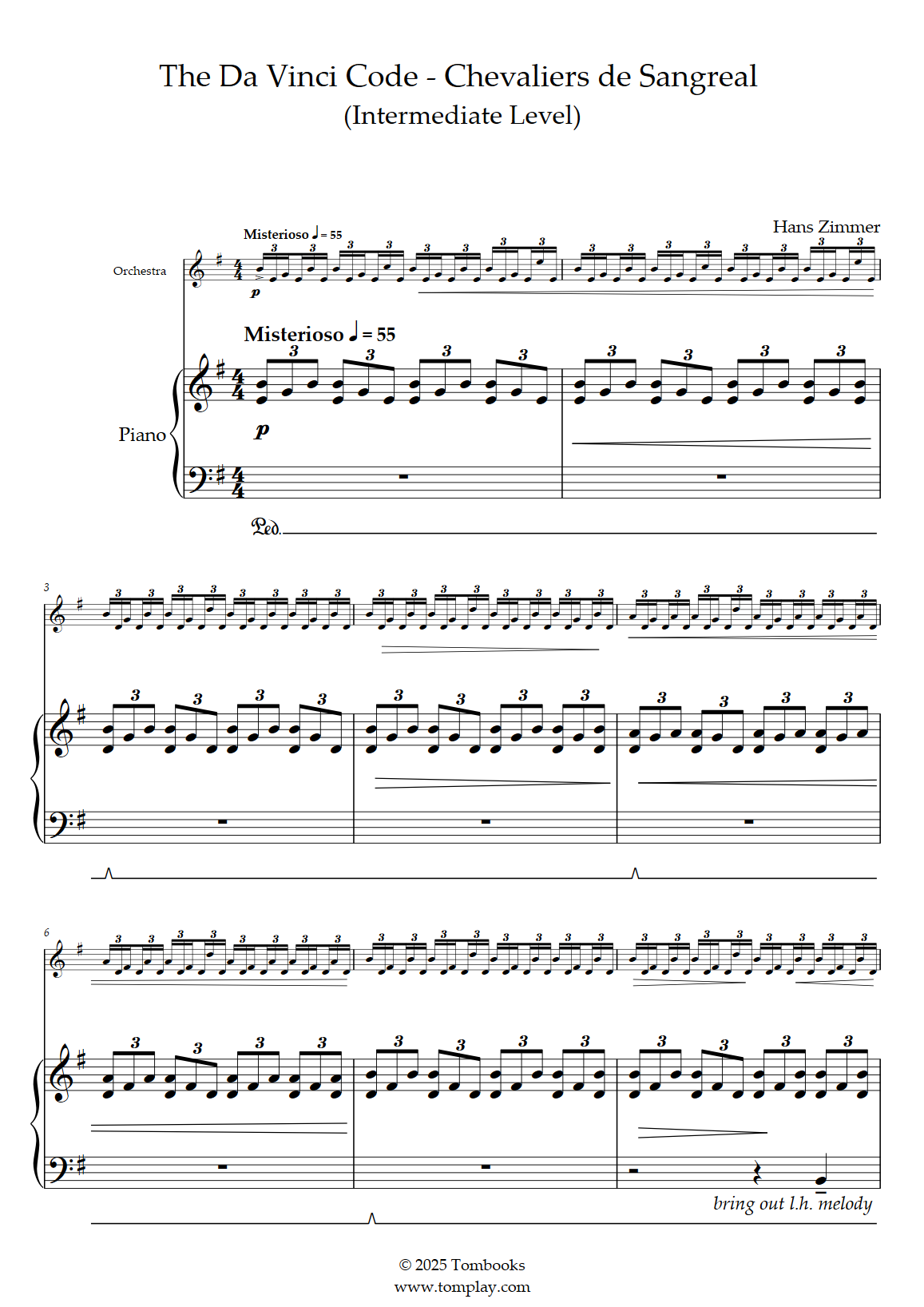 Téléchargez la partition Piano The Da Vinci Code - Chevaliers de Sangreal (niveau interméd…
